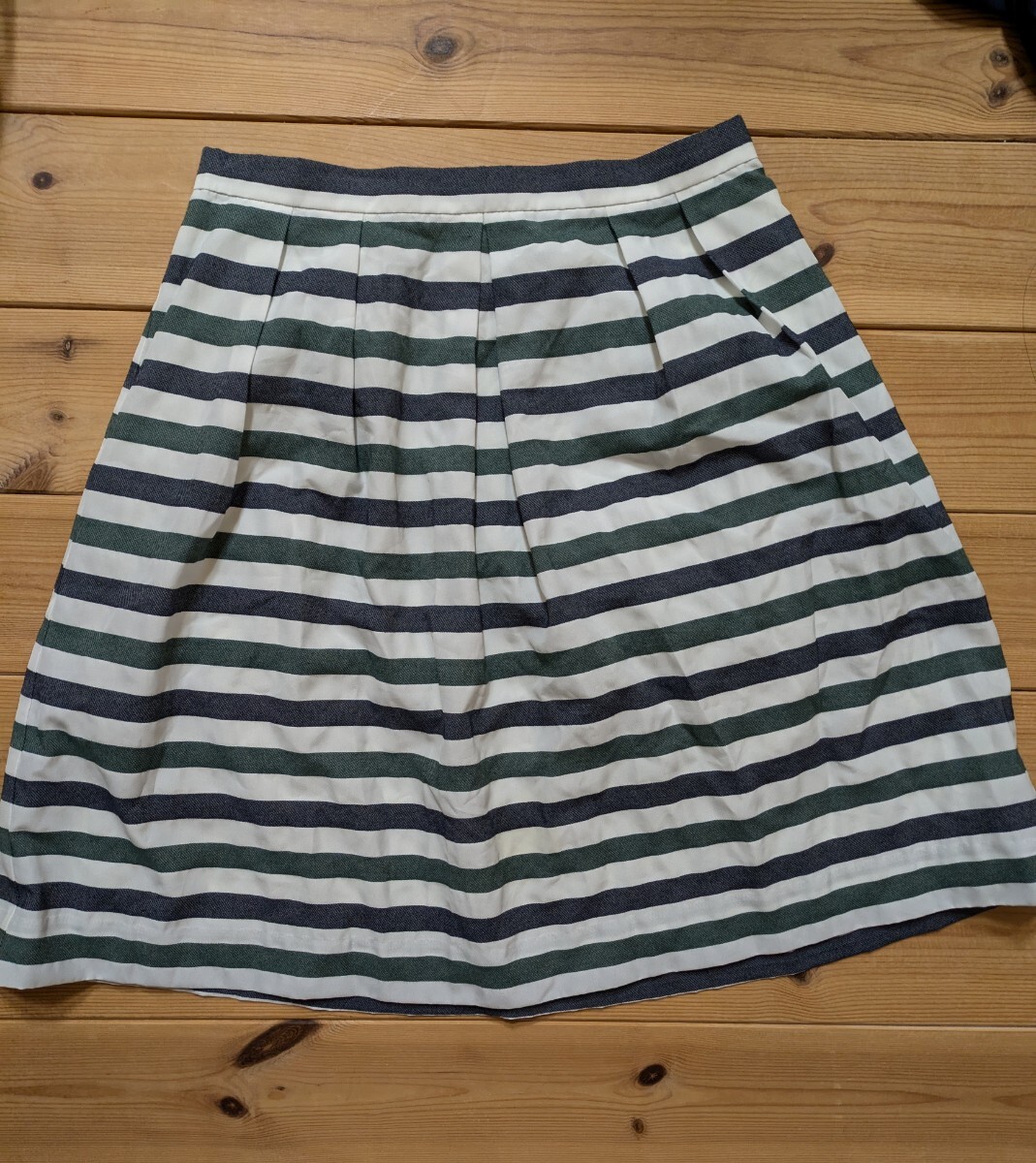 ロペピクニックのスカートです。ボーダーデザイン。一度はいたのみ。ポリエステル70綿30。裏地あります。汚れ見当たりません。自己紹介一読下さい
