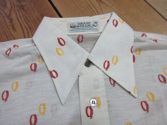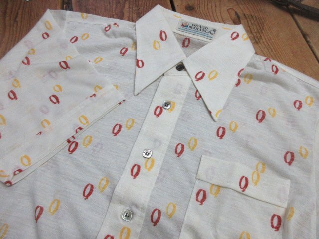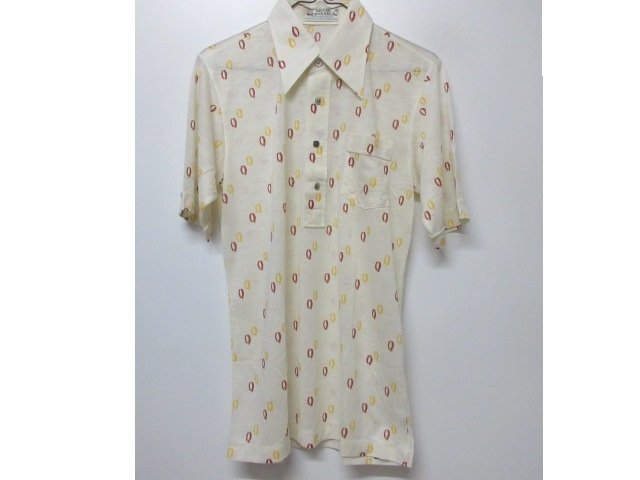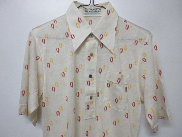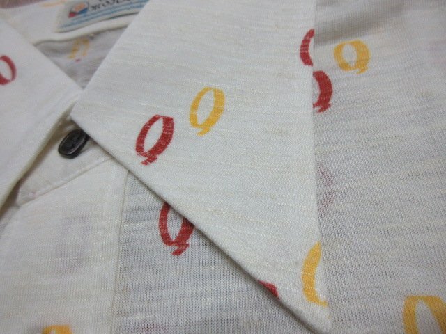 昭和レトロ 半袖 麻 柄シャツ M ベージュ MIZUNO オールド ヴィンテージ JAPAN古着 sy424