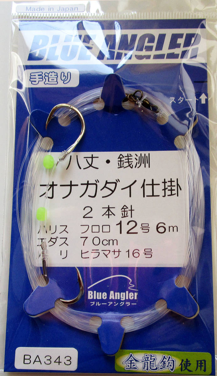 ブルーアングラー仕掛のご案内です。★中深場で釣れる超高級魚オナガダイ(ハマダイ)の仕掛です。市販品はほとんど無いので製作致しました。★品名:オナガダイ仕掛★ハリス:フロロ12号6m2本針★ハリ:金龍 白ヒラマサ16号 エダス70cm エダスはクレン親子に結ばれています。鈎元やサルカン部の編み付けはありません。★この仕掛は、八丈や銭洲などの深場でオナガを狙う仕掛です。遠征でシマアジやカンパチをやった後に深場を狙う場合がありますので、是非1枚お持ちください。★発送:郵便局のクリックポストでお送り致します。★送料:全国一律185円。複数でも送料は185円です。★このオークションは、入札した時点で落札出来る即決価格にて出品しております。他にも出品しておりますので、是非ご覧下さい。★出張等によりご連絡や発送等が出来ない場合があります。その様な場合のご連絡事項等は、自己紹介欄に記載致しますので、一度こちらをご覧下さいます様お願い致します。★以上よろしくお願い致します。