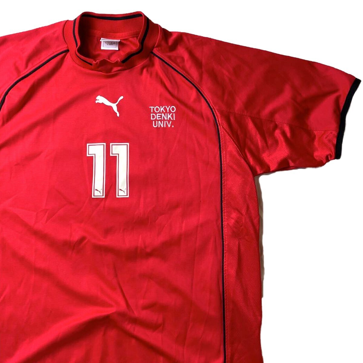 超希少! 90s 日本製 PUMA 東京電機大学 サッカー部 ヴィンテージ 半袖 ゲームシャツ ユニフォーム 11番 レッド 赤 O メンズ 古着 激レア