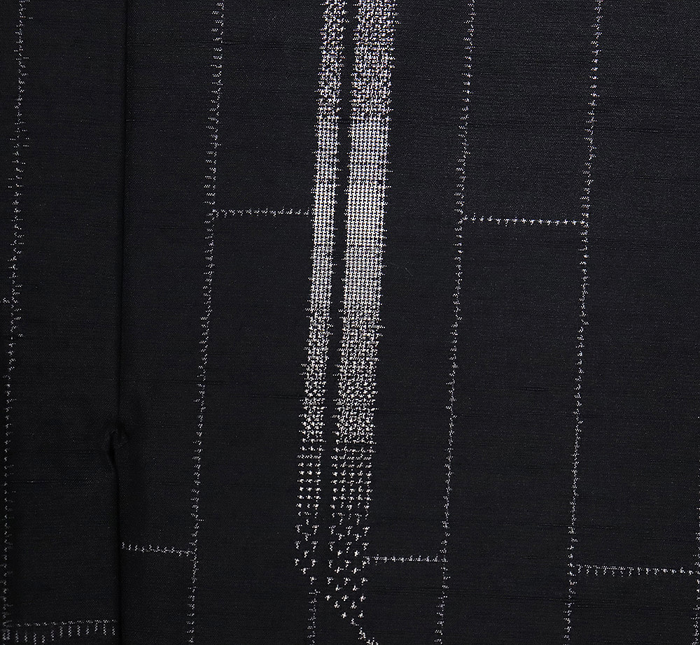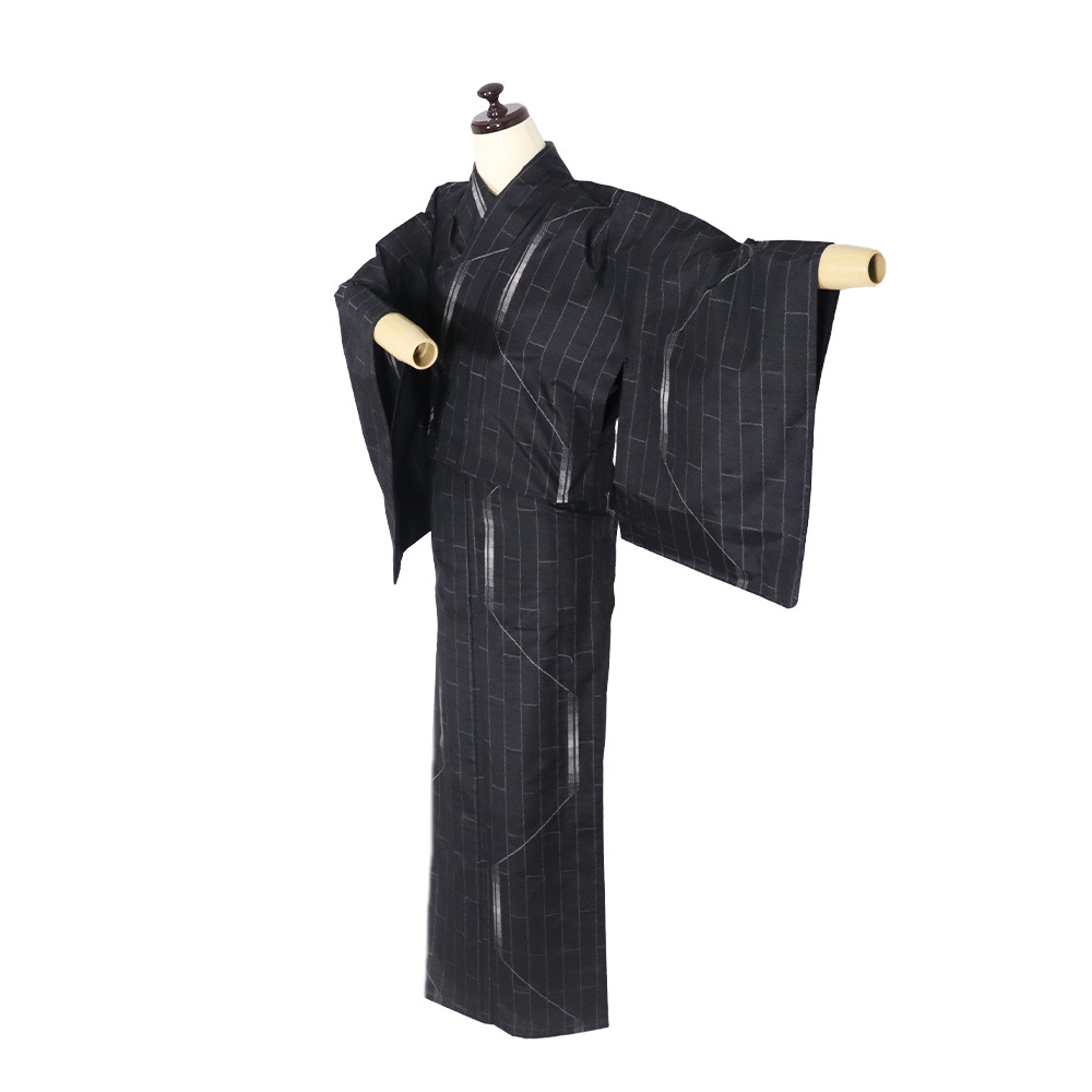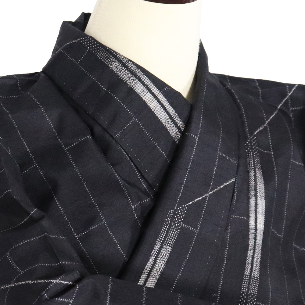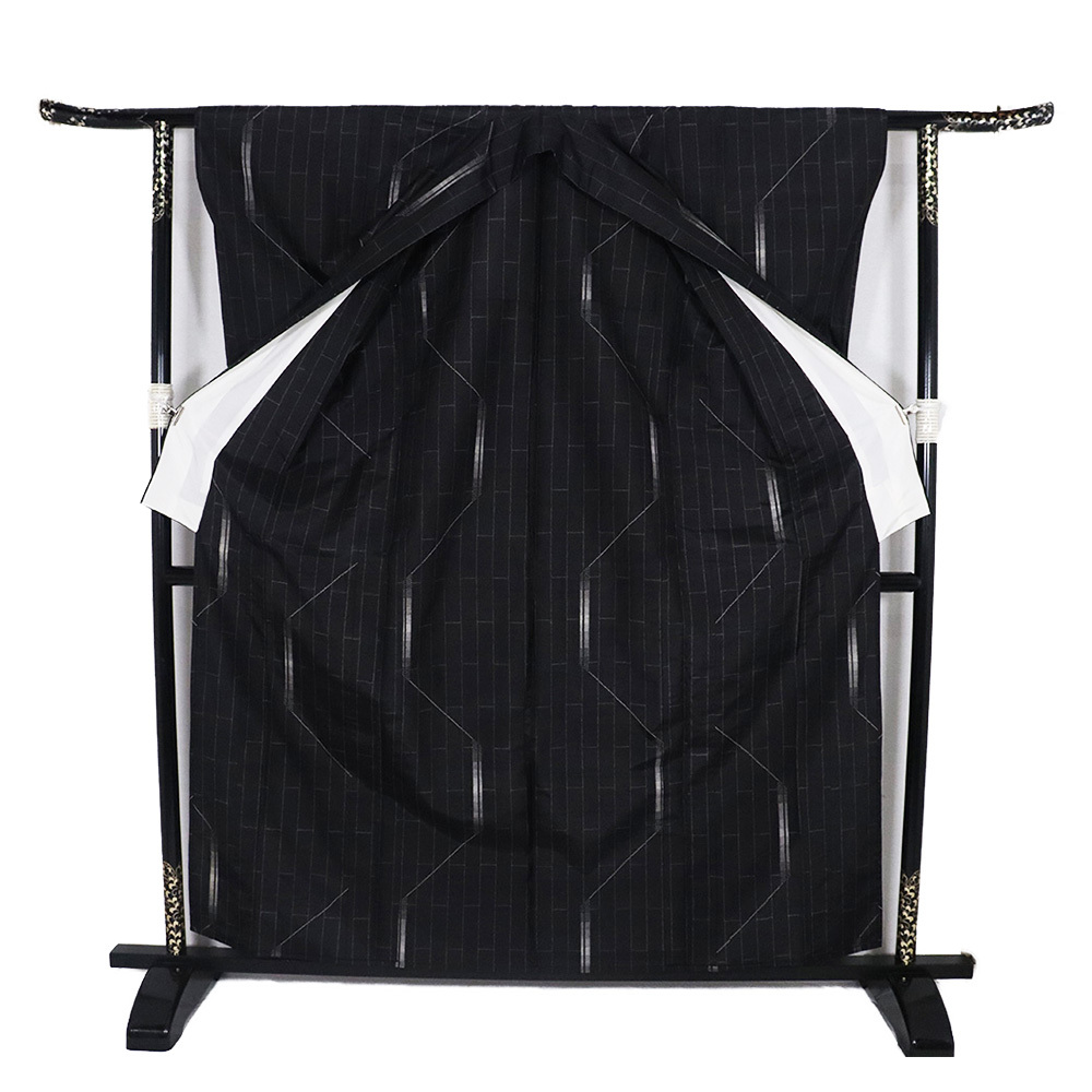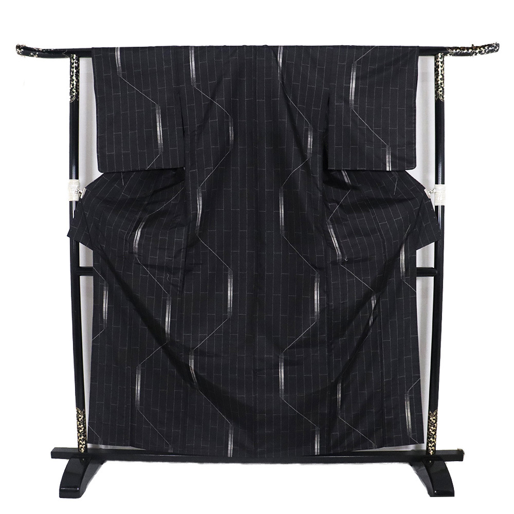 | 単衣 手織り紬 黒(黒色)地 幾何模様・縞 167 広襟 7号 | |