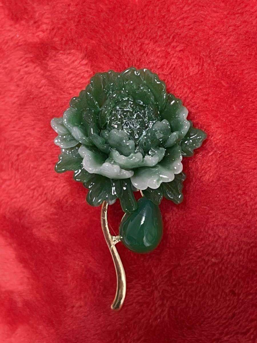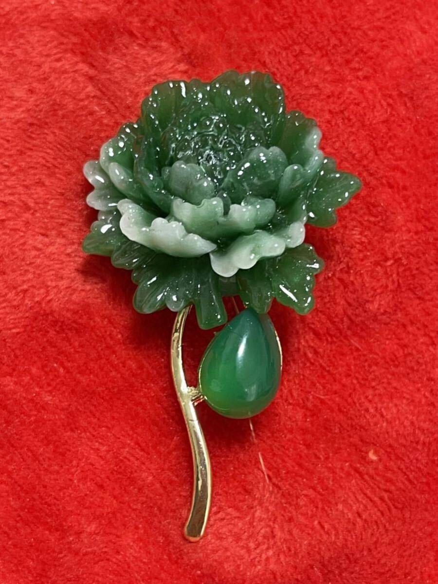 玉髄ブローチ 天然石 ボタンモチーフ 炭素&玉髄 高貴 上品 気品ある フォーマルからカジュアル迄~幅広く活用出来る♪ 和装小物