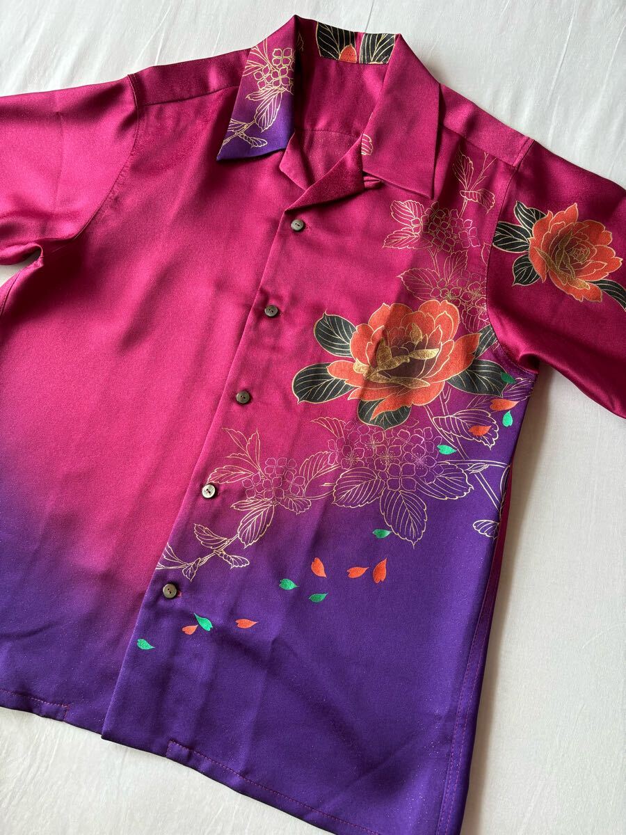着物リメイク アロハシャツ半袖シャツ花柄 サイズM
