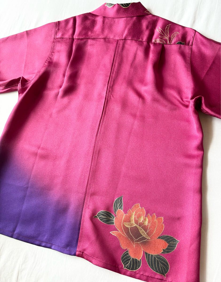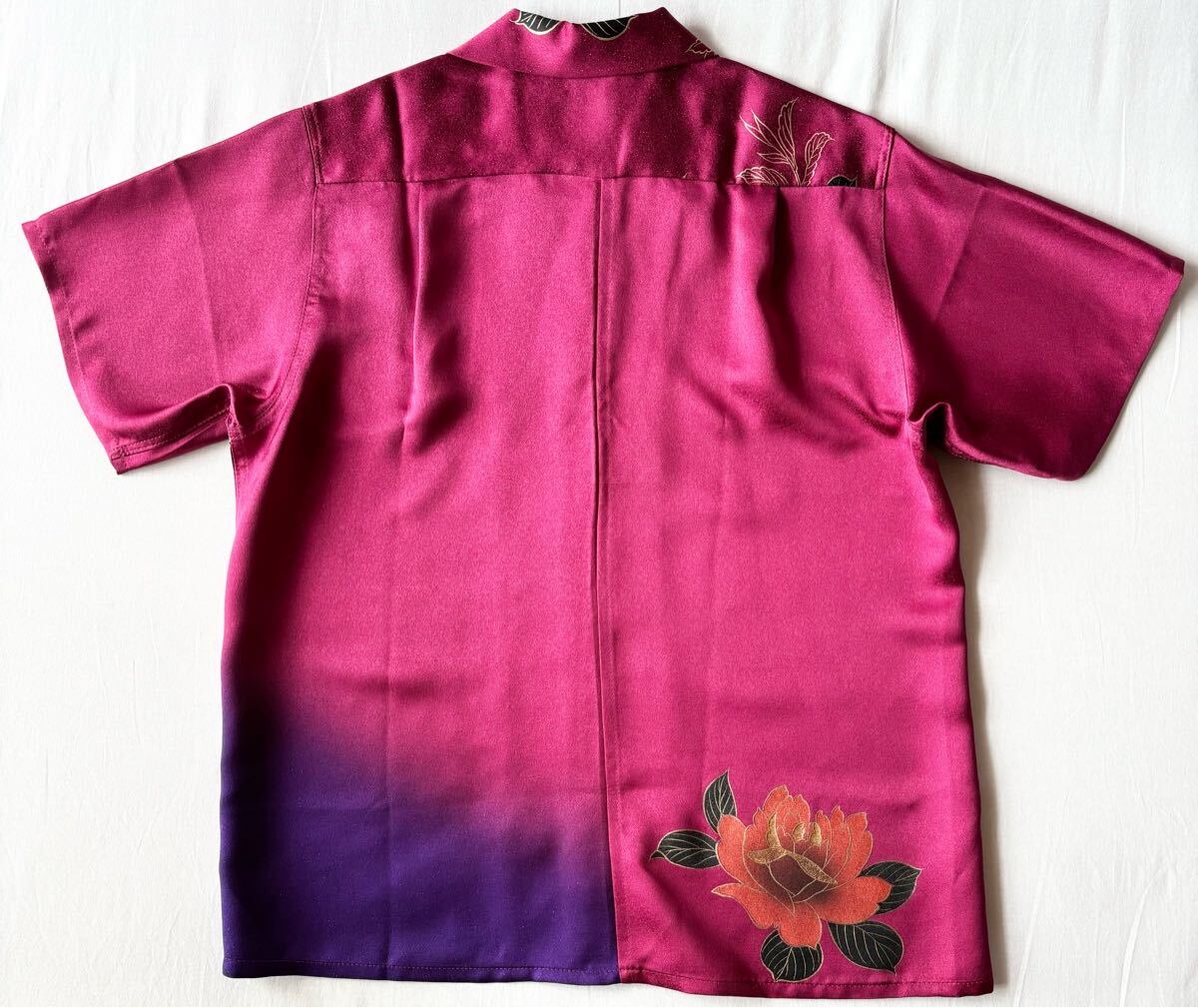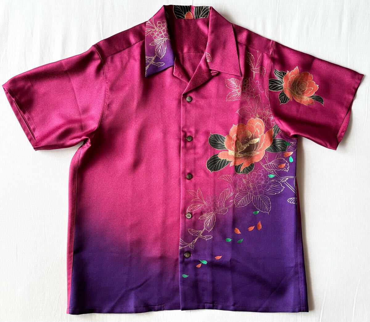 着物リメイク アロハシャツ半袖シャツ花柄 サイズM