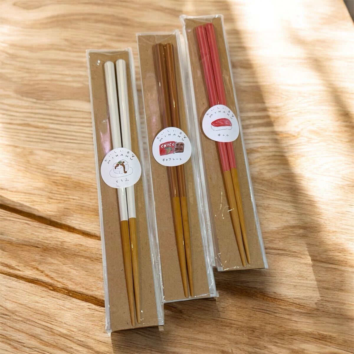 [MIKAMU] おいしい色箸 とうふ/中トロ /チョコレート 3膳 日本製 抗菌仕上げ 家庭用食洗機対応 個包装 贈り物 木製 お箸 プレゼントに