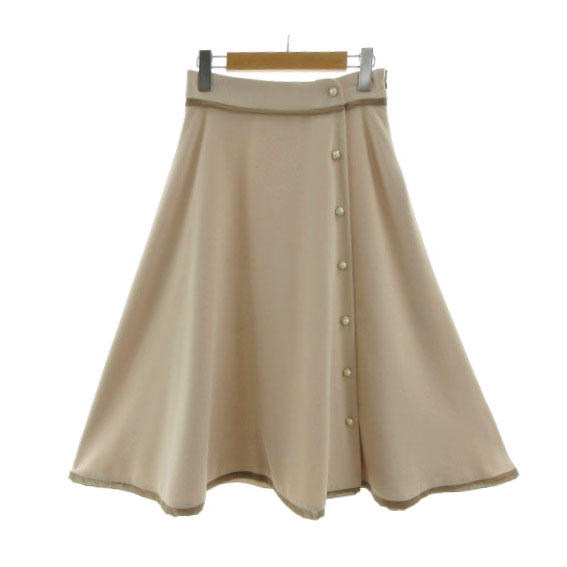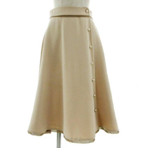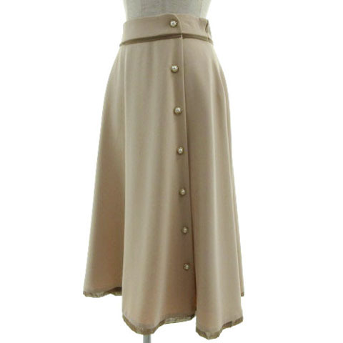 ミッシュマッシュ MISCH MASCH スカート フレア パールボタンダウン風 レース切替え ミディ丈 ベージュ系 ブラウン系 茶系 M
