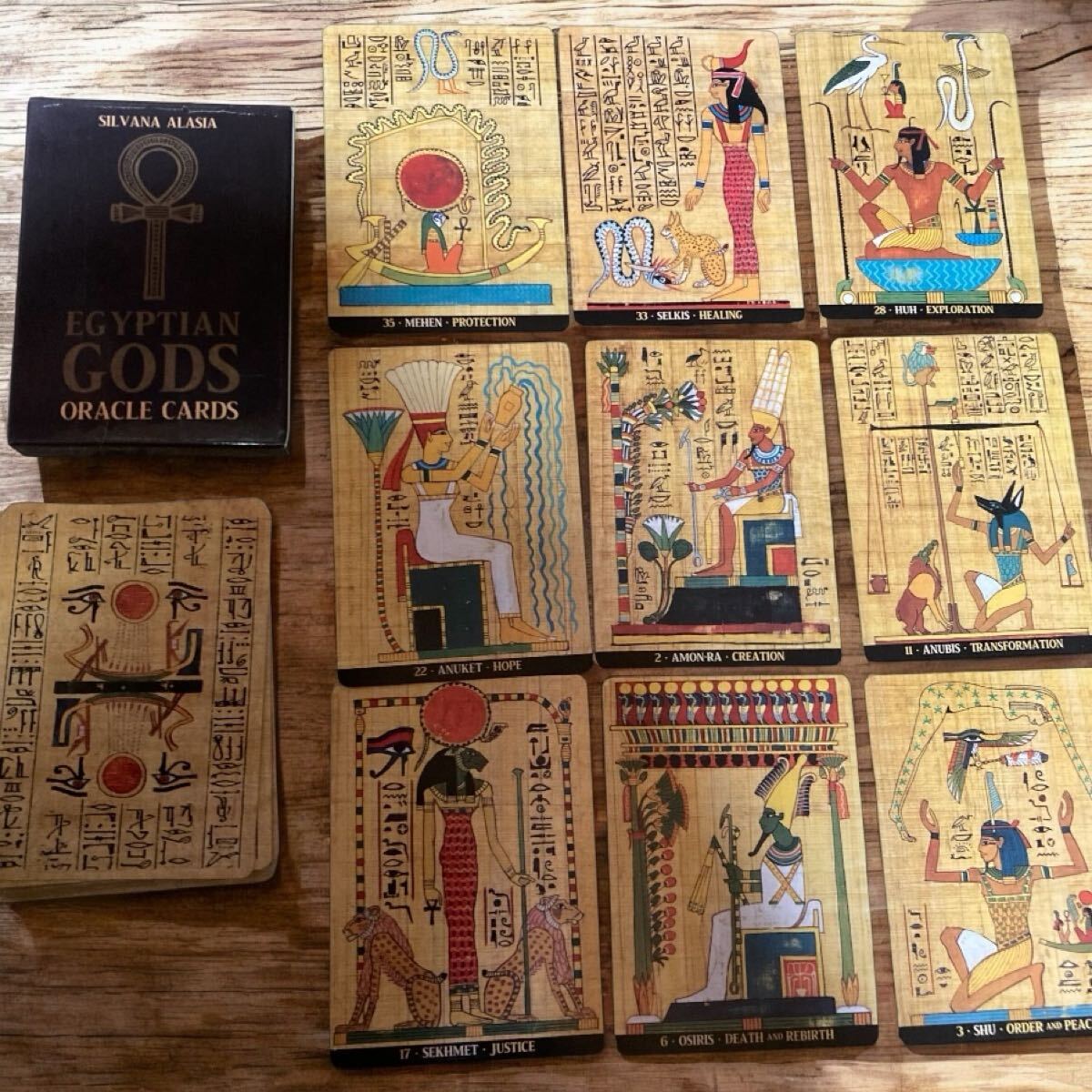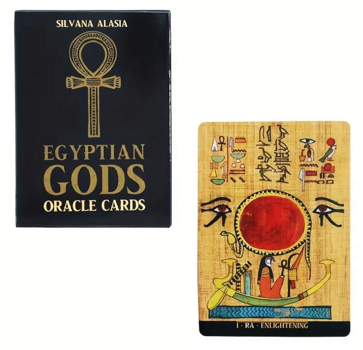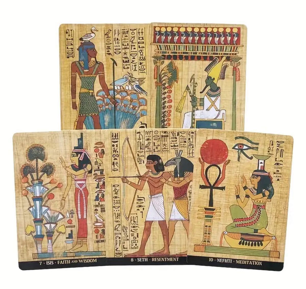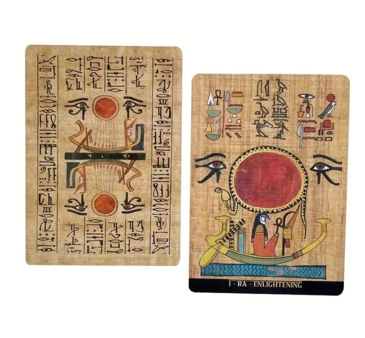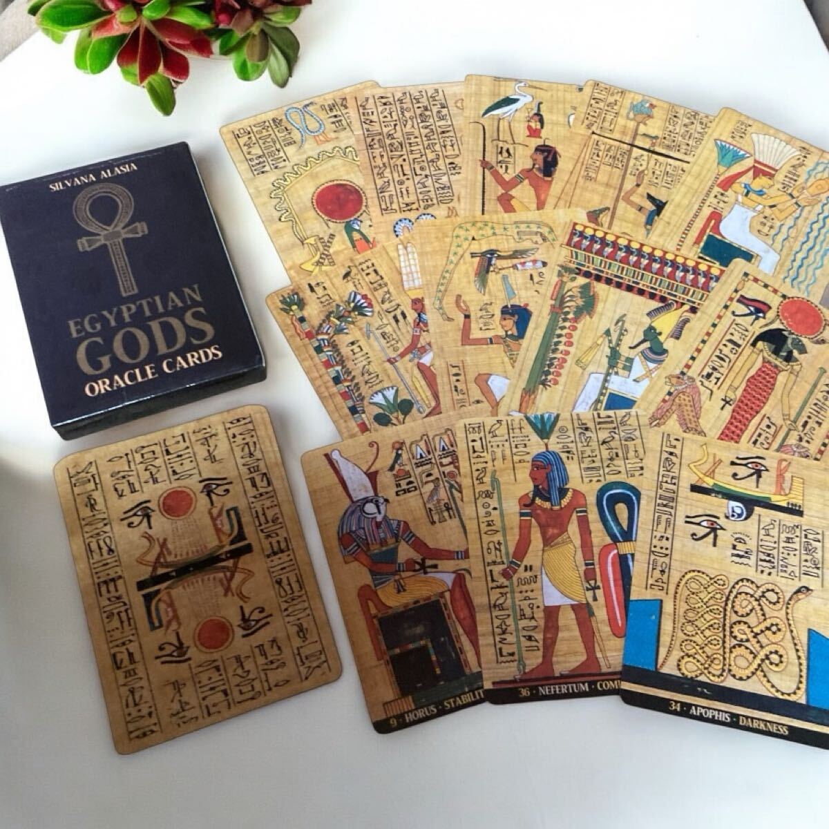 エジプト神をテーマにした36枚のオラクルカードデッキセットです。裏面印刷あり。古代の象形文字と神々のデザインが特徴。エスニックなカードな雰囲気がおすすめです。※輸入品の為、カード、外箱に傷がある場合がございますが予めご了承ください。神経質な方はご購入をお控えください。