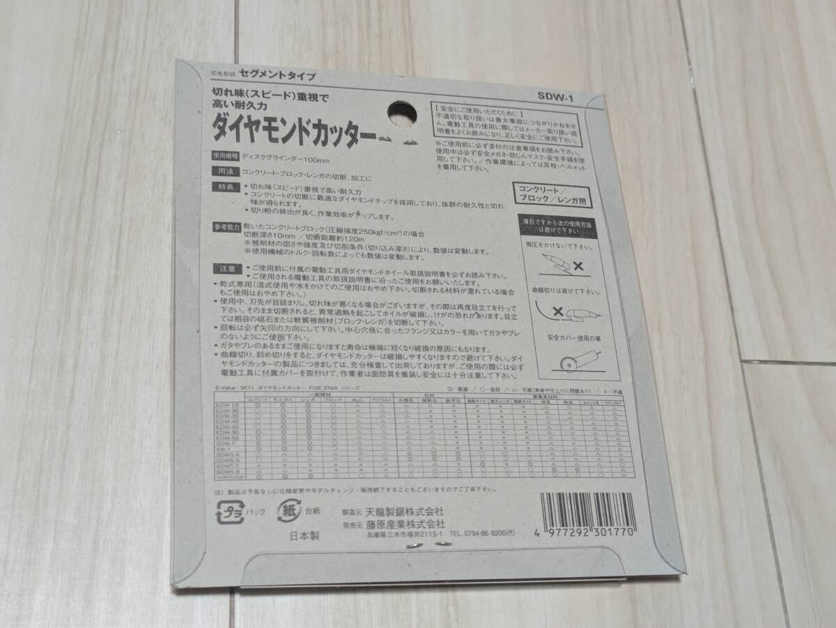 『ダイヤモンドカッターSDW-1 コンクリート・ブロック・レンガ用』です。