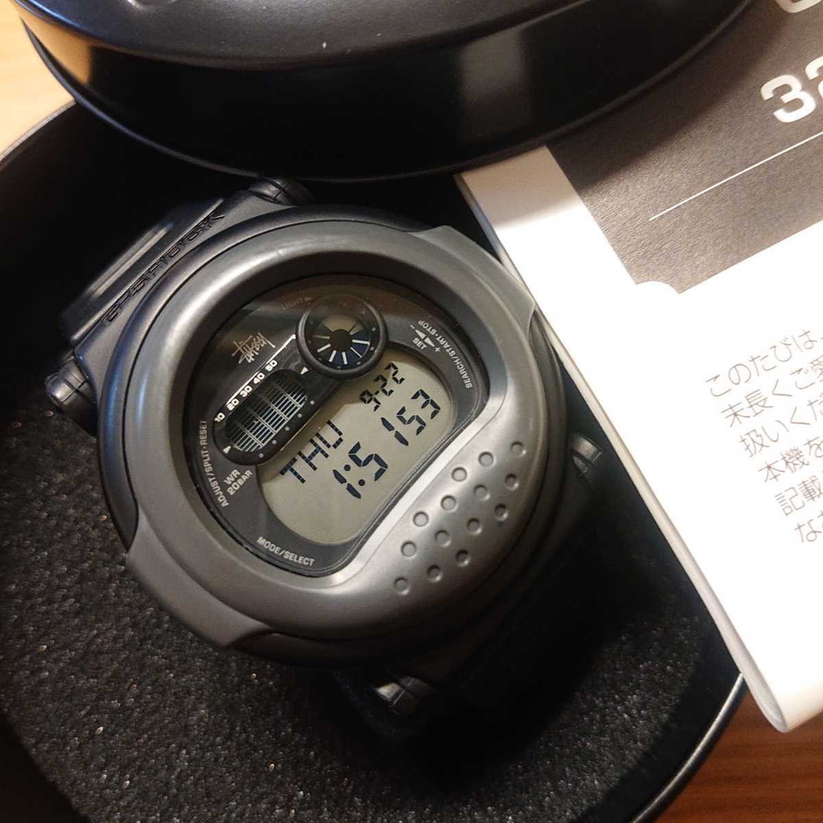 CASIO Gショック 希少モデル! ラスト1本! 生産終了 CASIO×ステューシーコラボモデル G-001ST-1JR ブラックジェイソンモデル バックライトにステューシーロゴが浮かびます 付属品、専用BOX、取説付 ガラス傷無し 電池交換済み!安心個体です!