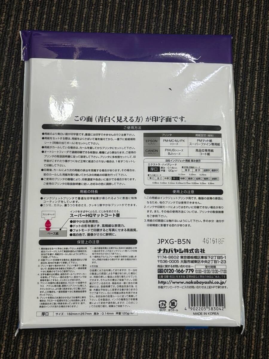 (倉T284)まとめ売り 10点【ナカバヤシ digio インクジェット用紙 厚口 エクストラハイグレード B5 マット紙 100枚】