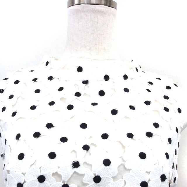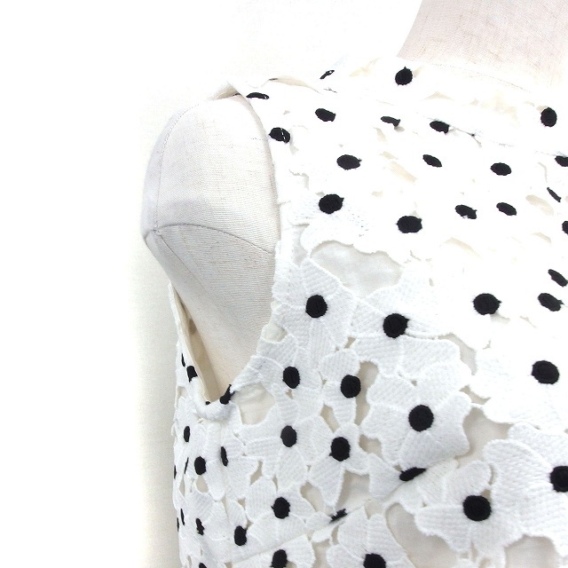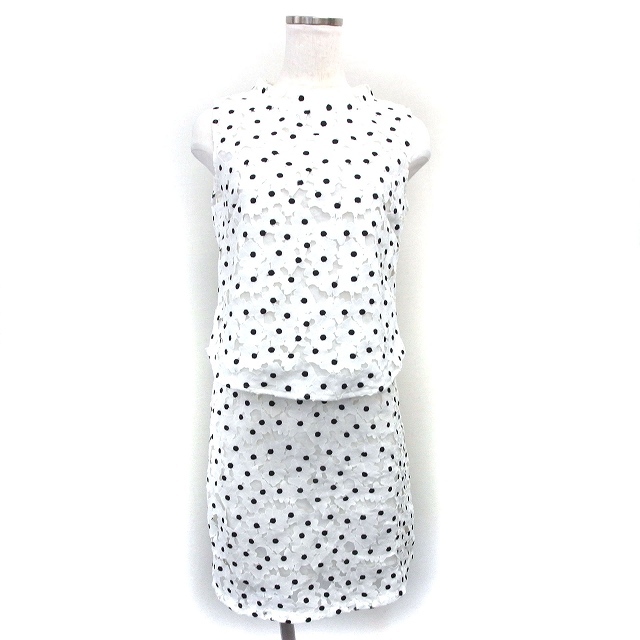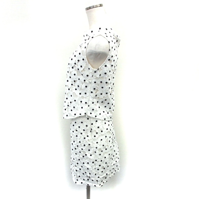 レディアゼル REDYAZEL セットアップ 上下 レース ブラウス ラウンドヘム ノースリーブ キュロット ショート丈 サイドジップ M 白