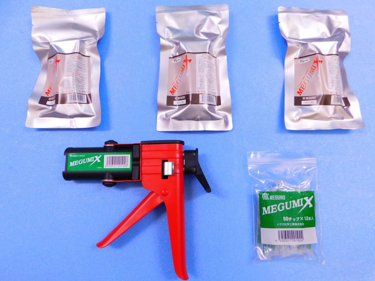 【メグミックス接着剤・グレーセット】※《充填用ガン》《グレー120286 ×3個》《チップ120280 ×12本》