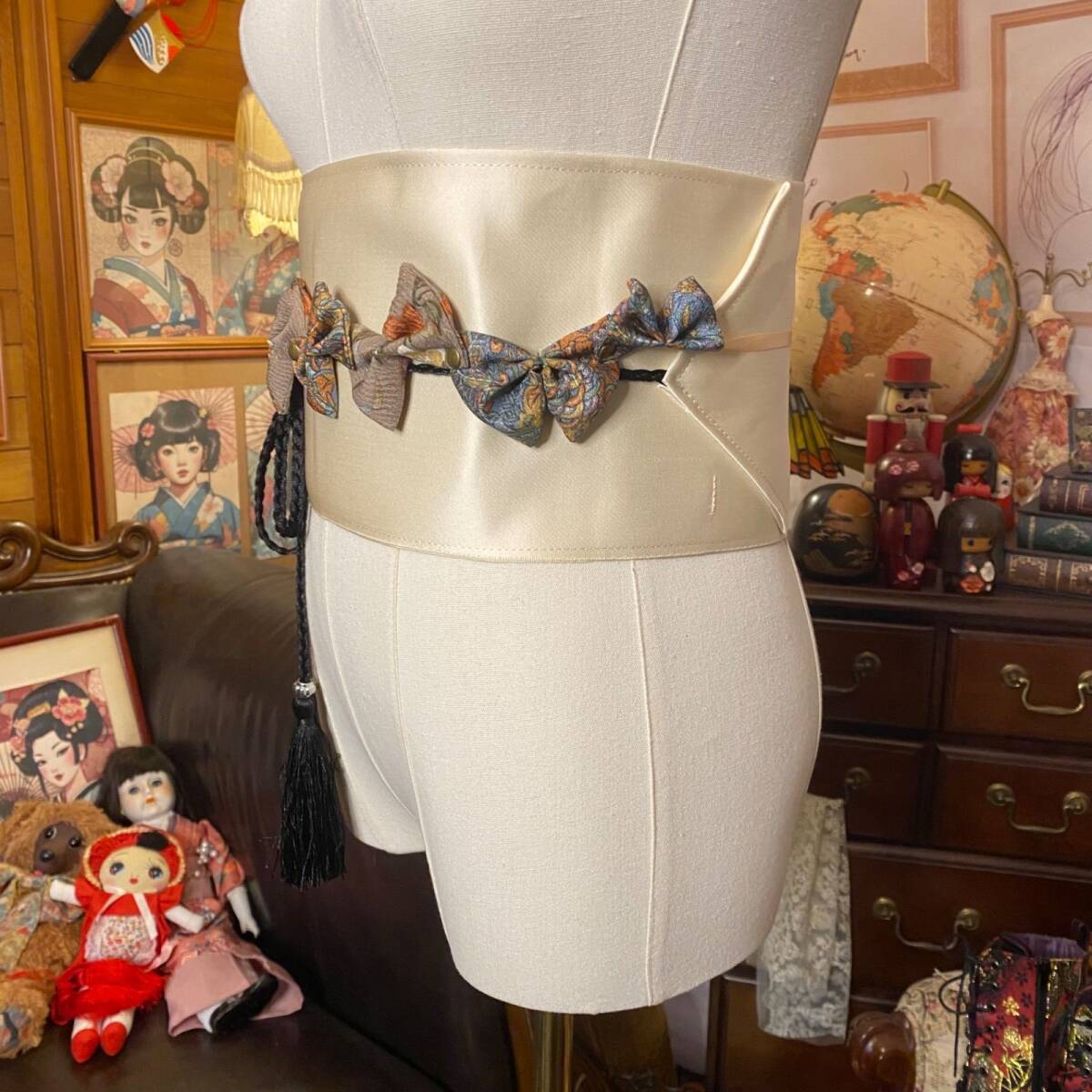 使用されたのは、重厚な和柄が描かれた着物生地。