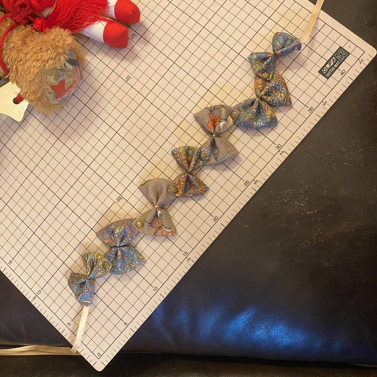 着物生地を使用したリメイクアクセサリー。