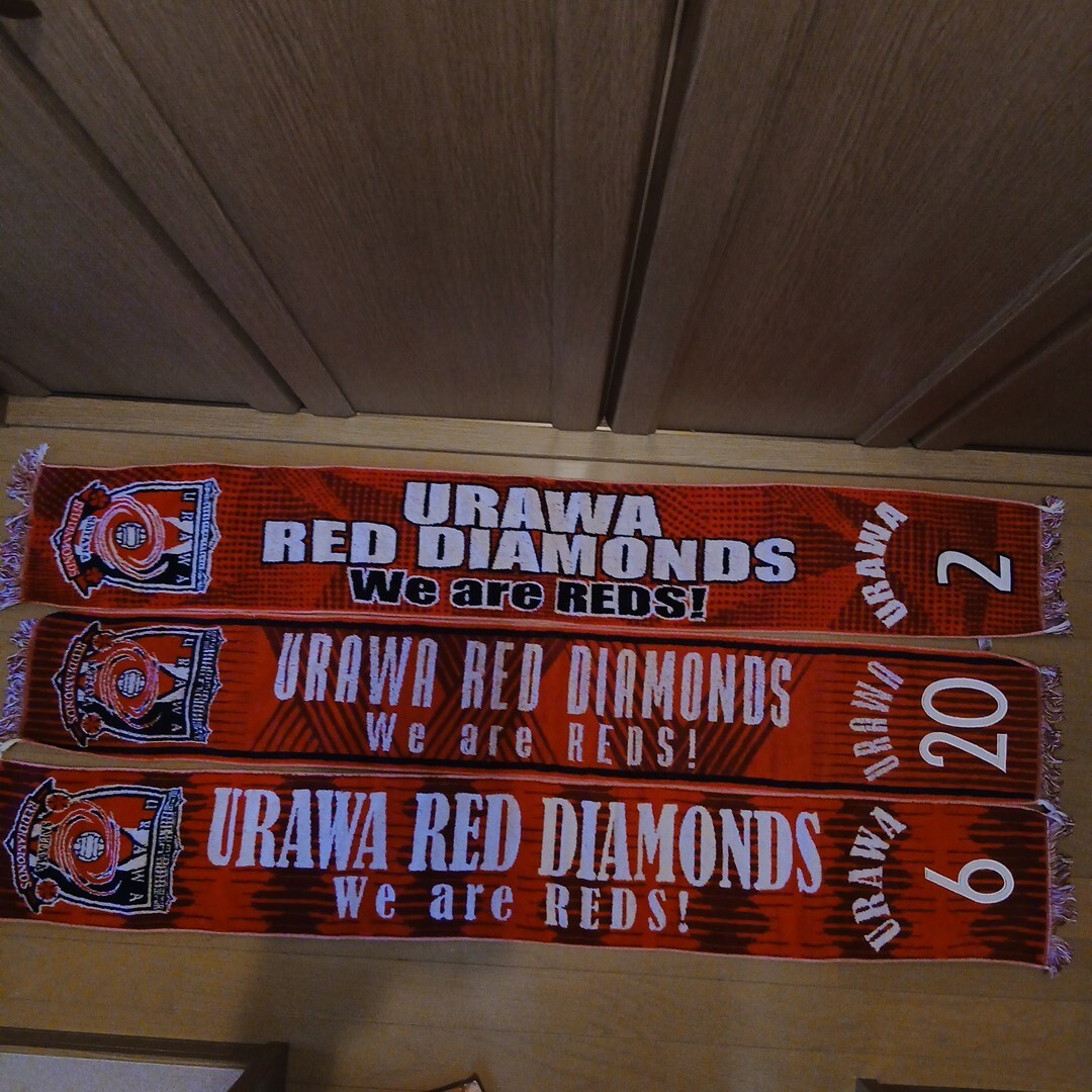 サッカーJリーグ浦和レッズ背番号タオルマフラー3枚まとめて約136×20センチ洗濯済みです。