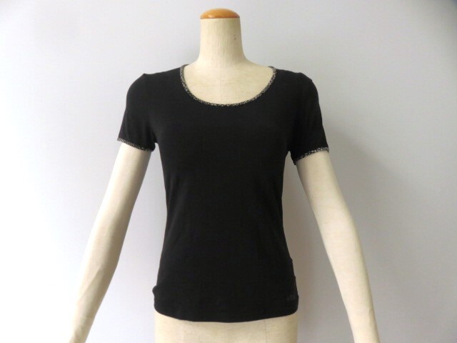 ■訳あり 新品同様 三陽商会【KRIZIA】クリツィア 高級 ストレッチ カットソー【40】11号 L 送料185円 黒 ブラック W1759
