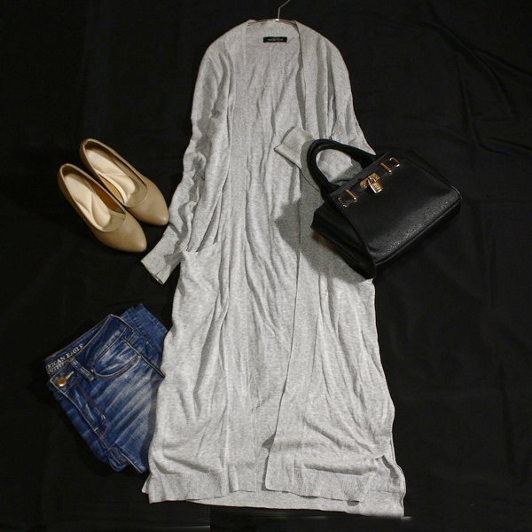 大人可愛いノーボタンのコットン・ロングニットカーディガンです。