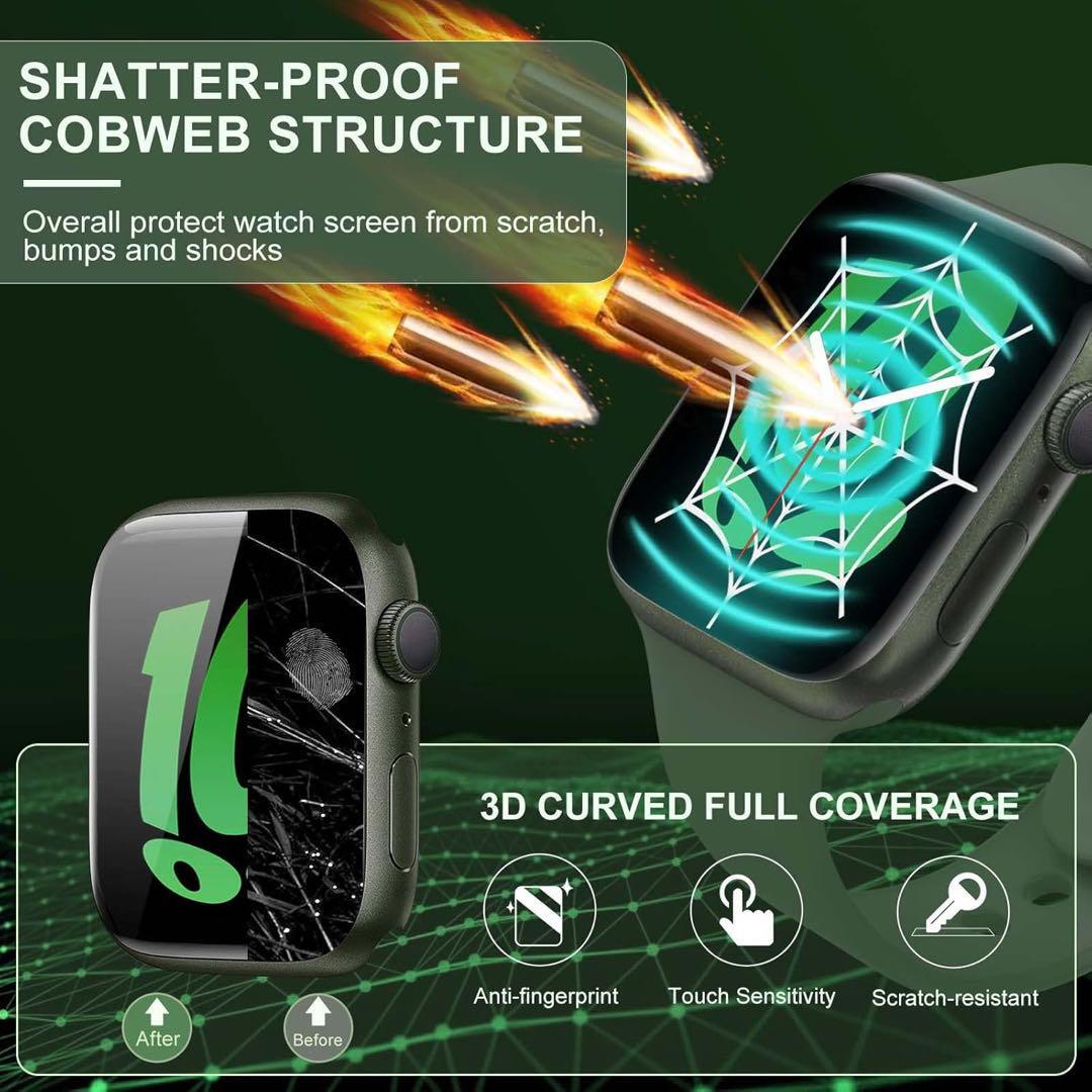 Apple Watch Series 9/8/7用フィルム - 41mm 3D 曲面ガラスフィルム 傷を修理する 高透過率 耐指紋 飛散防止 気泡なし強化ガラス Apple Watch液晶保護フィルム 41mm(2枚入り)