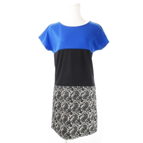 アンドバイピー&ディー ピンキー&ダイアン & by P&D ワンピース ミニ 半袖 ストレッチ 配色 切替 レースプリント 38 青 ブルー /CK15 レディース