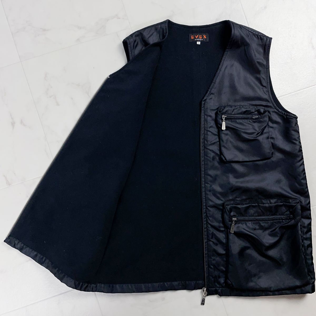 美品 EVEX by KRIZIA エヴェックス バイ クリツィア フィッシャーマンベスト 裏起毛 フルジップ レディース 黒 ブラック サイズ40*CD33