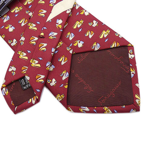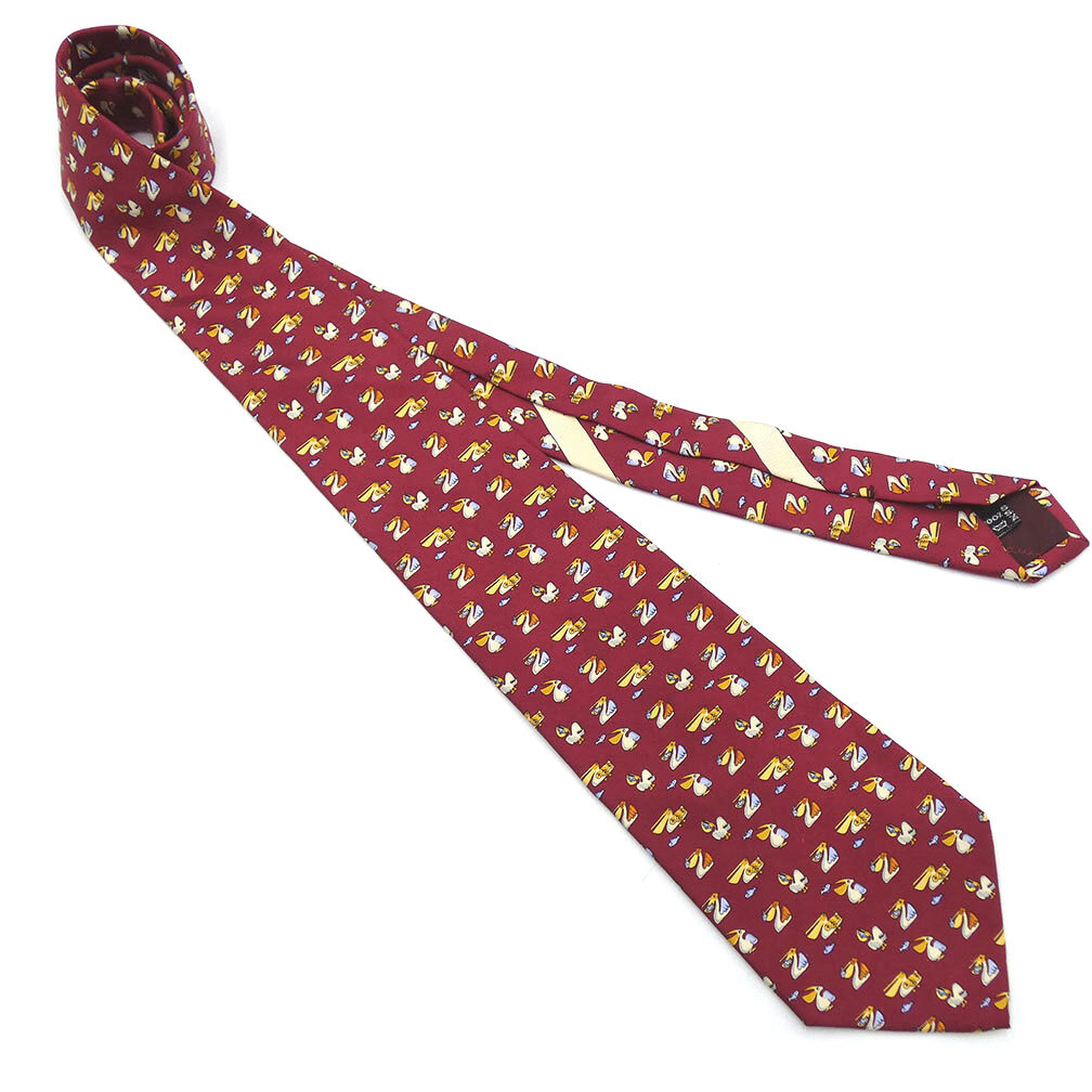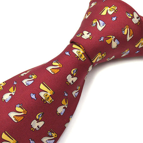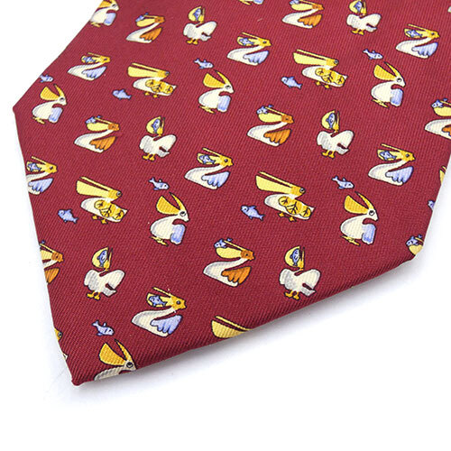 サルヴァトーレ フェラガモ ブランド ネクタイ Ferragamo シルク 100% ワイドタイ アニマル 動物 鳥 ペリカン レッド 赤 OJ10177
