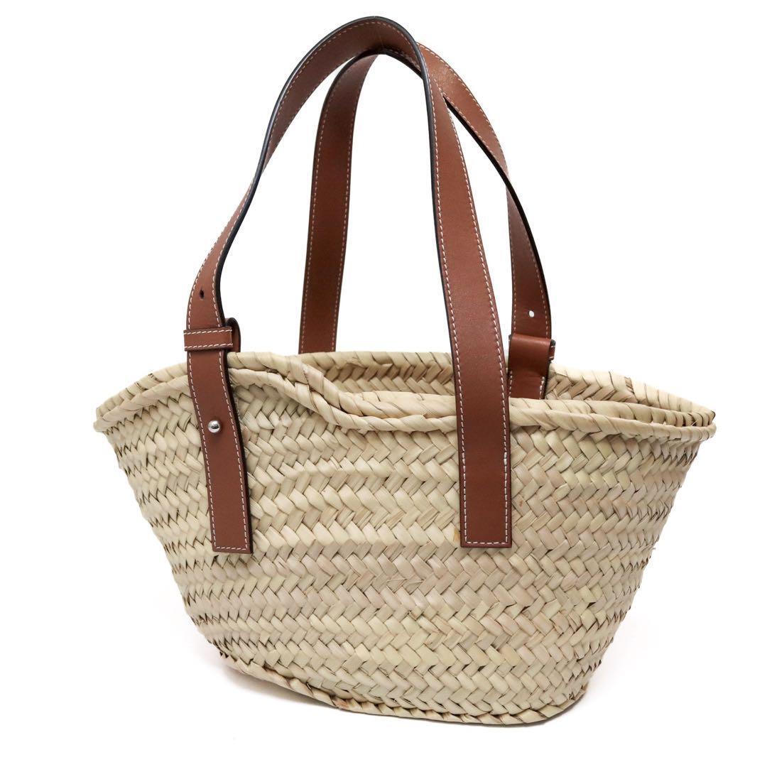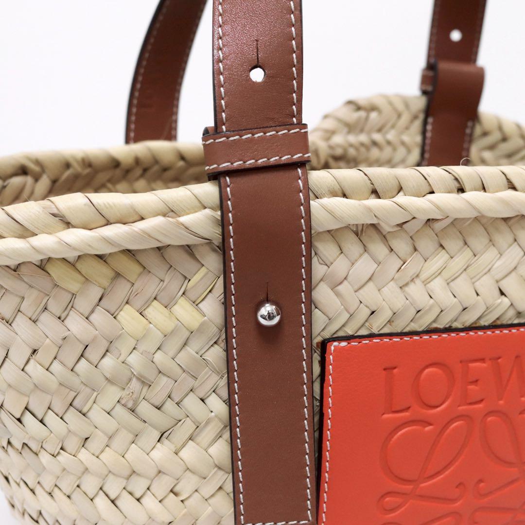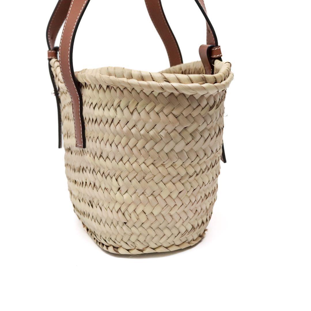 ロエベ アナグラム ラフィア&カーフレザー スモール バスケットバッグ かごバッグ