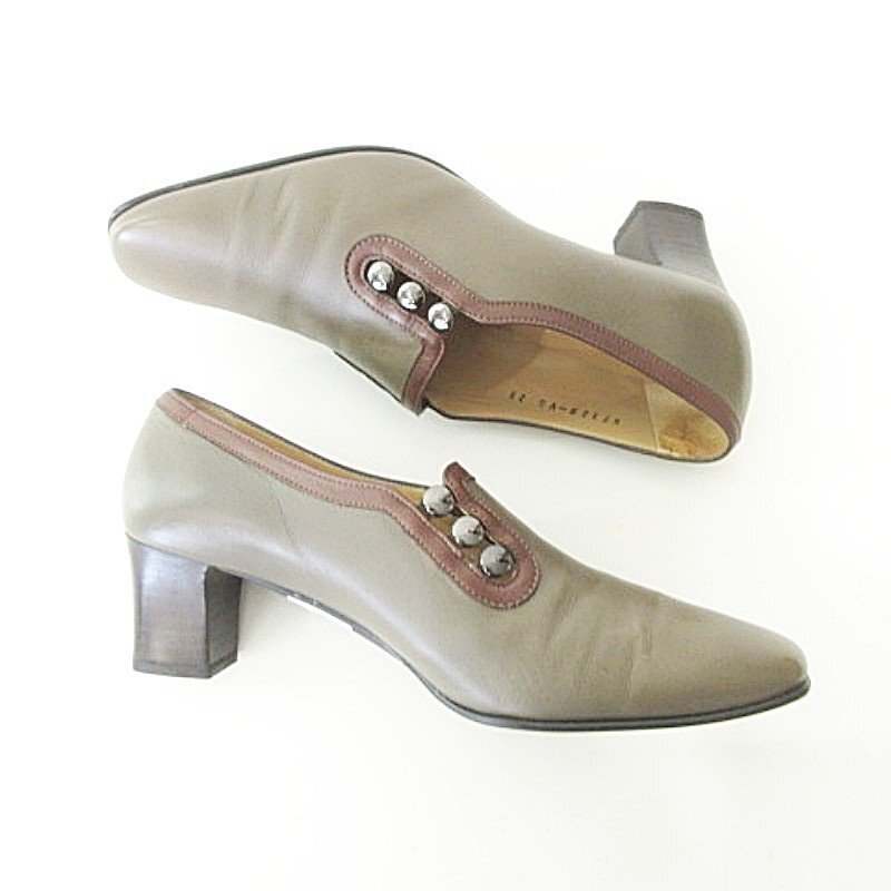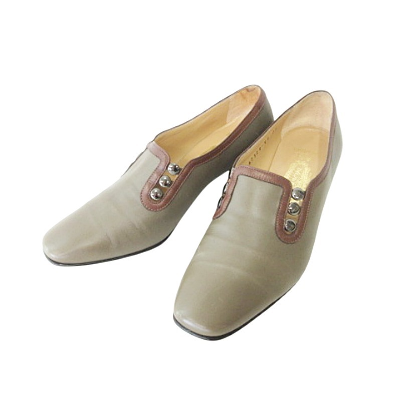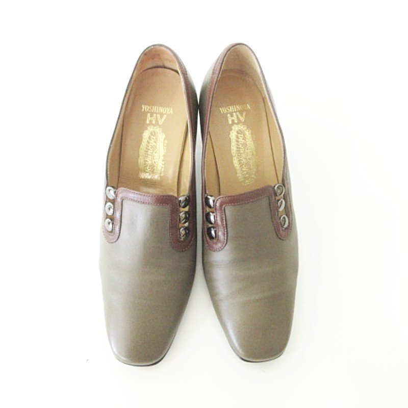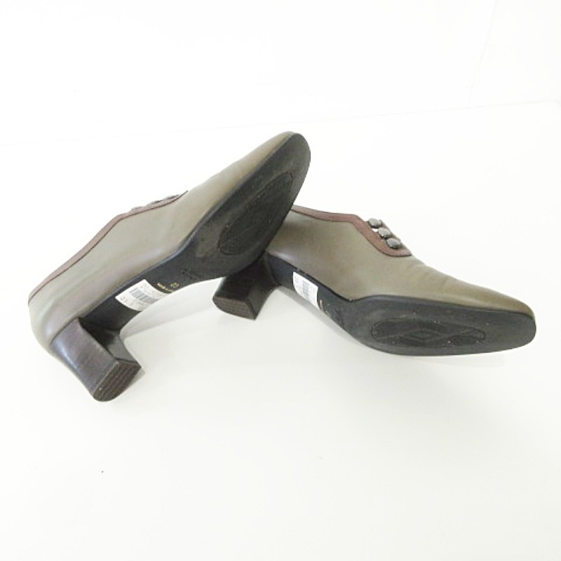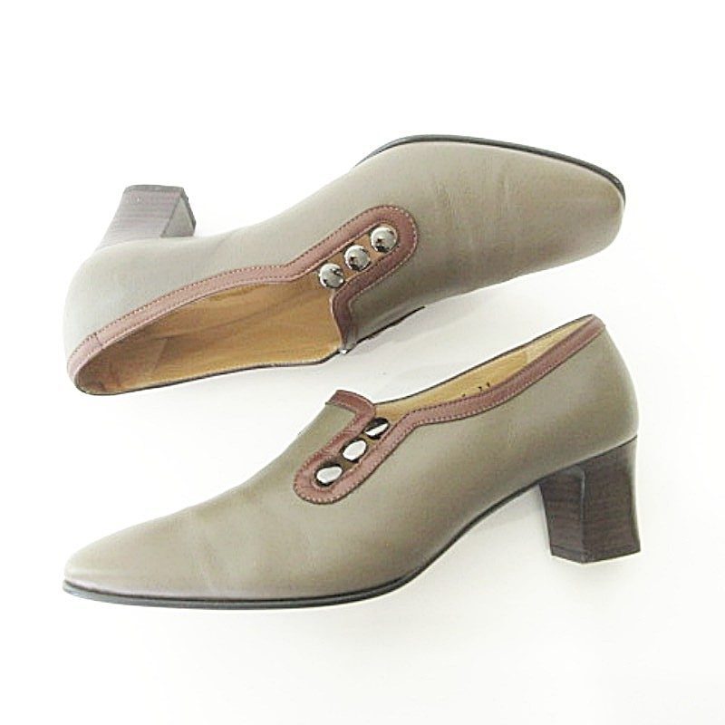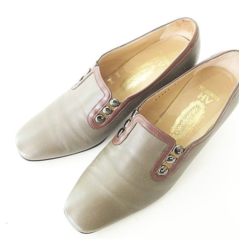 未使用品 銀座ヨシノヤ 美品 箱付き パンプス ヒール 靴 シューズ 日本製 23.0cm カーキ レディース