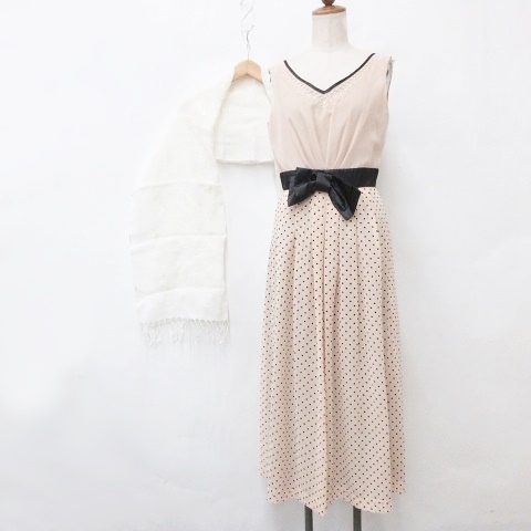 RyuRyu レヴ ガラージュ REVE GARAGE ワンピース ショール パーティー フォーマル パール リボン ドット ピンク ブラック クリーム 7AR