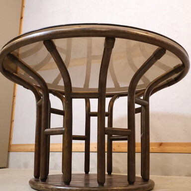 木製家具ならではの温かみと個性が光るラウンドテーブルは、