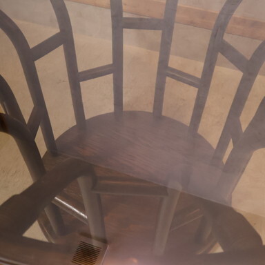 テーブルの土台となる木製フレームは、まるで芸術作品のようなユニークなデザイン。