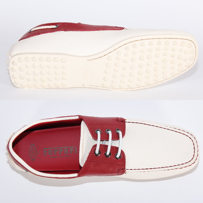 TOD'S × Ferrari トッズ × フェラーリ コラボ 限定 ドライビングシューズ CITY GOMMINI シティ ゴンミーニ ホワイト×レッド XRM0LR0L2708AG 159K レザー ローファー モカシン シューズ 靴 TODS スエード メンズ【新品/未使用/正規品】売れ筋