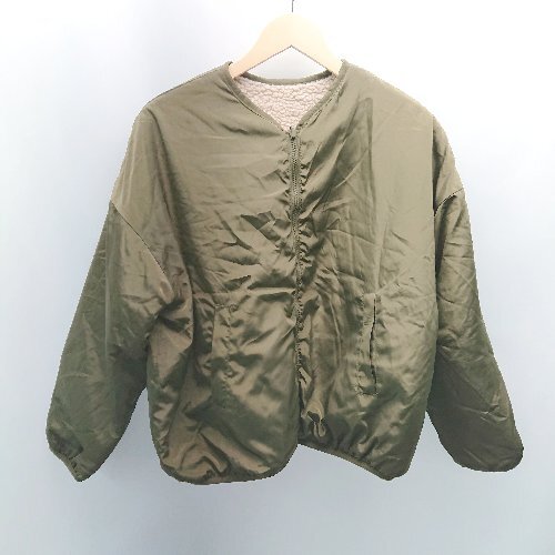 ◇ CLASSICAL ELF ショート丈 ウエストゴム Vネック オーバーサイズ 長袖 ダウンコート サイズL グリーン レディース E