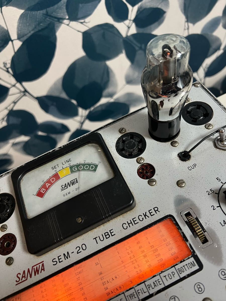 当方の試験機で同型式の未使用の真空管を試験すると80程度の値を示しますので基準として参考にしてください。