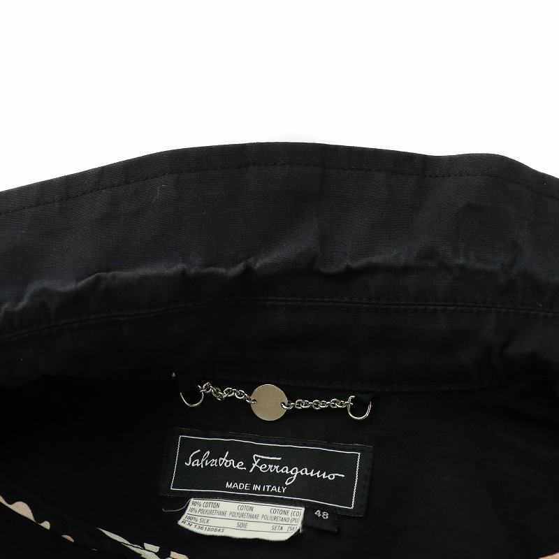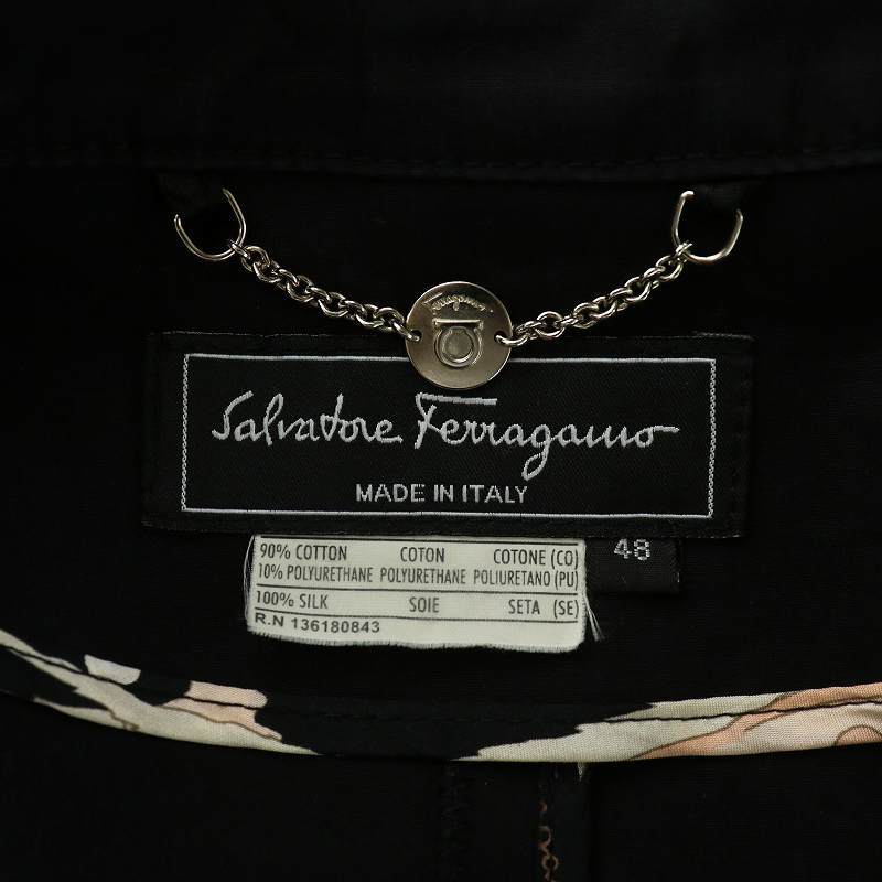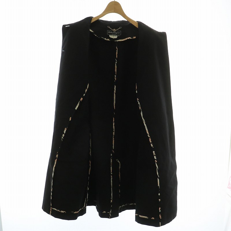 サルヴァトーレフェラガモ Salvatore Ferragamo ステンカラーコート アウター ガンチーニ シルバーボタン ベルト付き 48 XL 黒