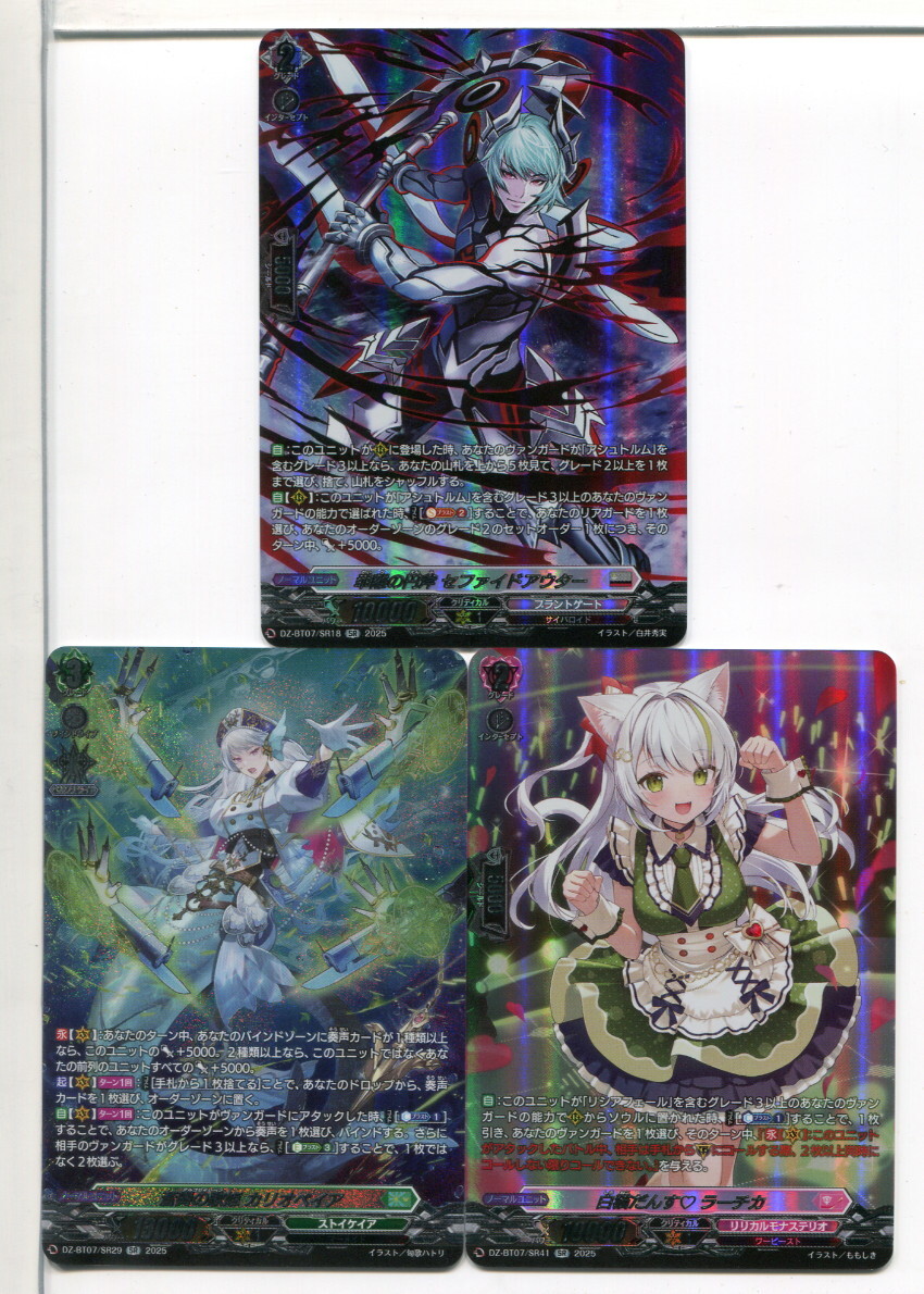 | カードファイト!! ヴァンガード SRカード 7枚セットです。スレなどの傷みがあるカードもございます。注意事項と発送詳細(送料)をご確認のうえ、ご入札をお願いいたします。 ※カード番号は下記の通りですが、記載ミスがあるかもしれませんので画像で最終確認をお願いいたします。 DZ-BT05/SR(18,19,20,28), DZ-BT07/SR(18,29,41) |