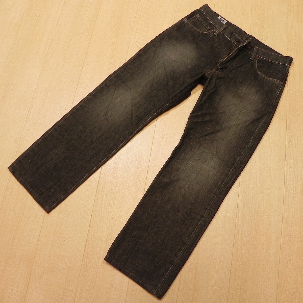 (895★ 日本製 EDWIN エドウィン 403 インターナショナルベーシック ストレート ユーズド加工 ブラックジーンズ w32 古着 即決 ★
