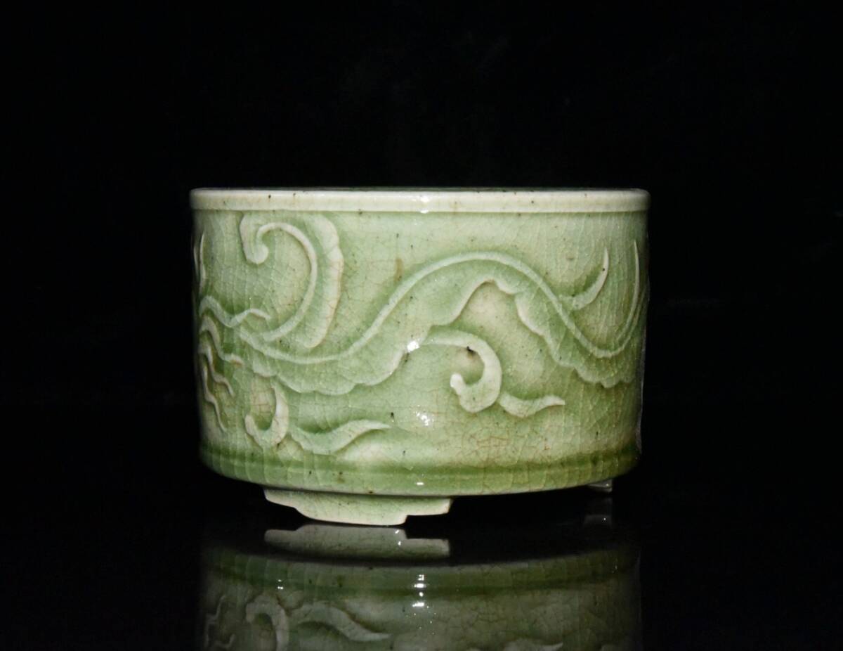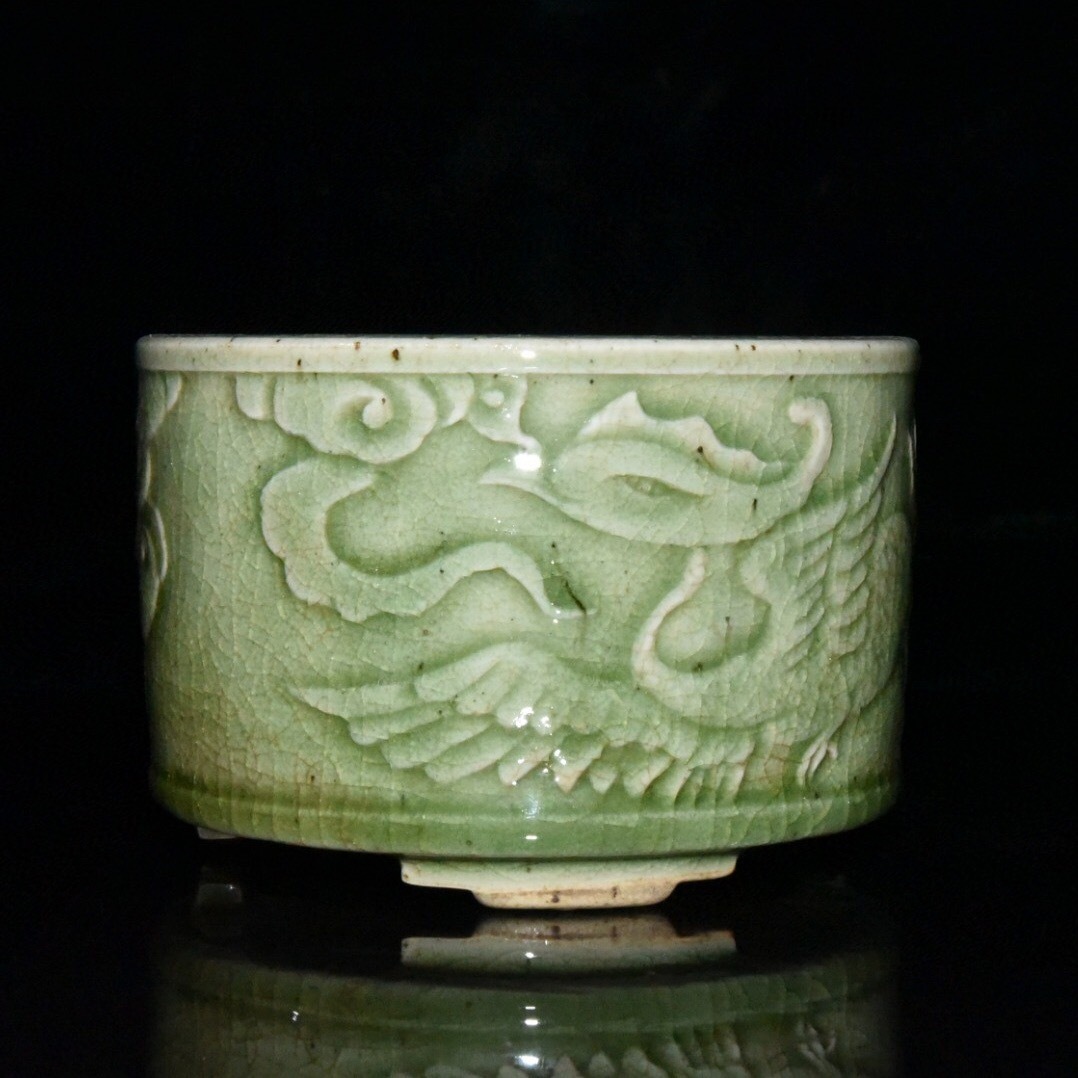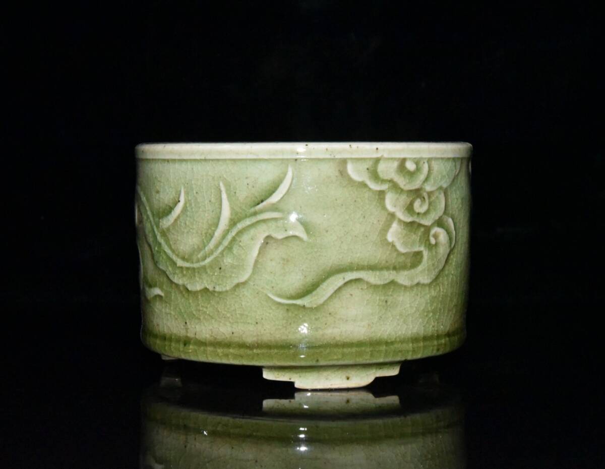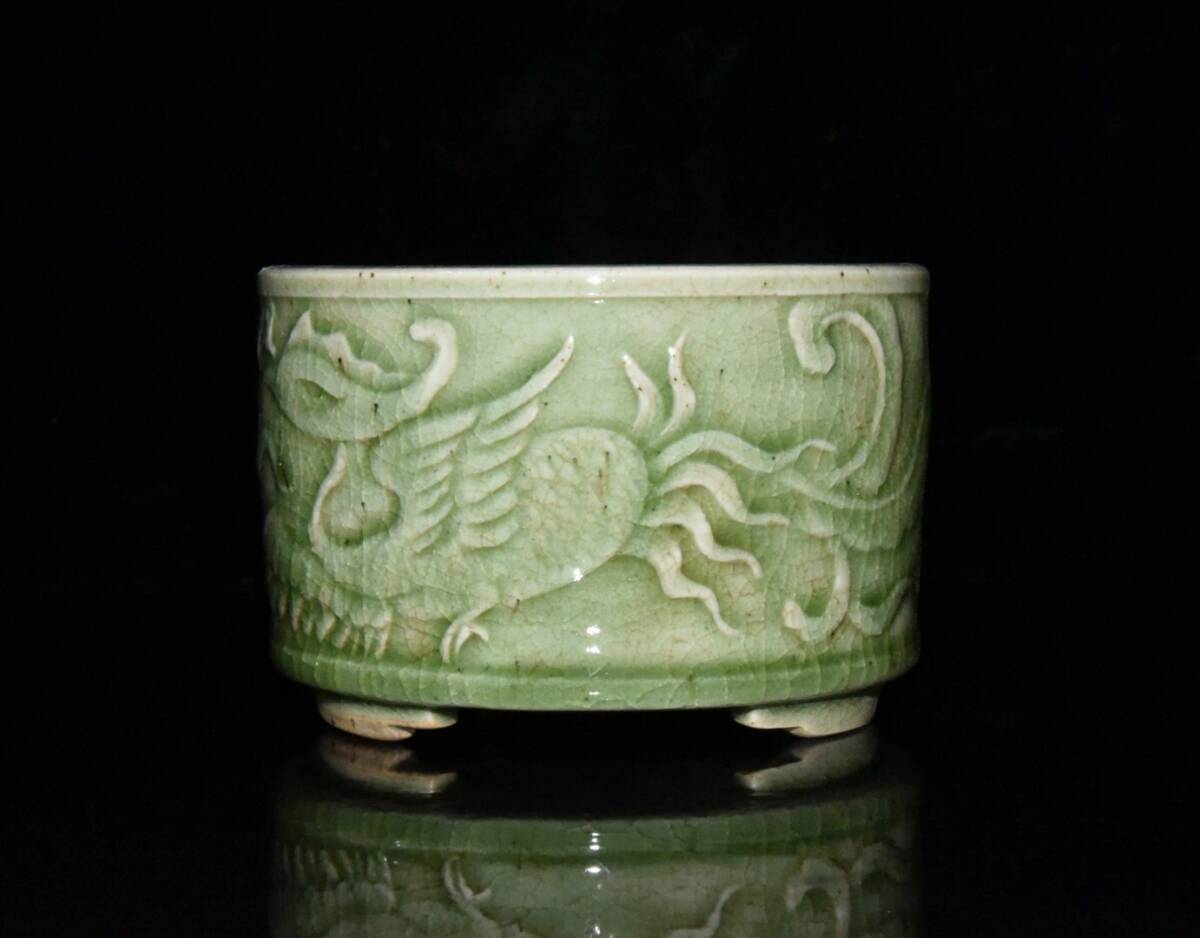 【超珍館蔵】清 乾隆年製款 古陶瓷品 豆青釉 開片 鳳紋 熏香炉 陶藝 古賞物 古董品 古美術品 時代物 旧家蔵出 稀少珍蔵品