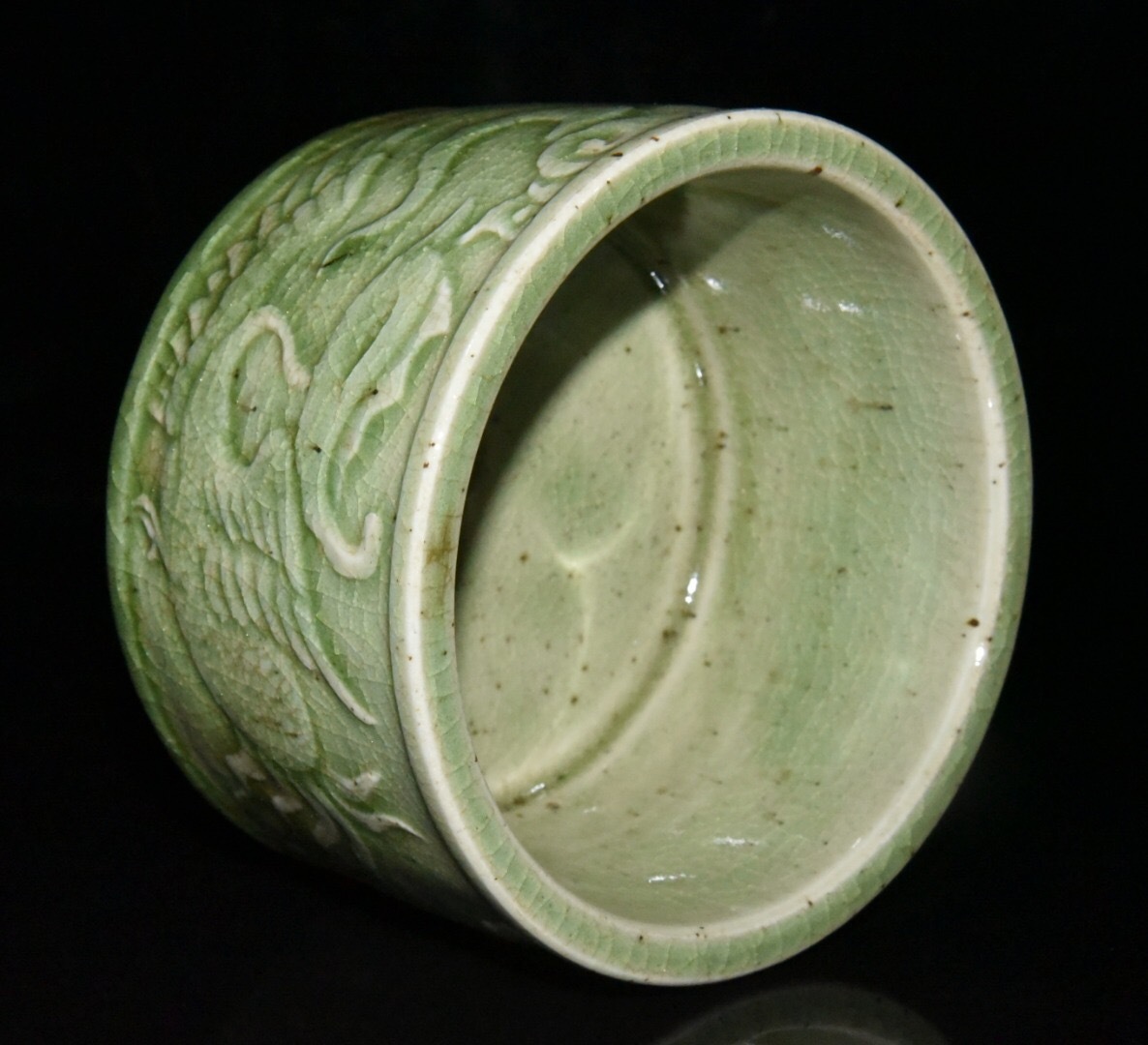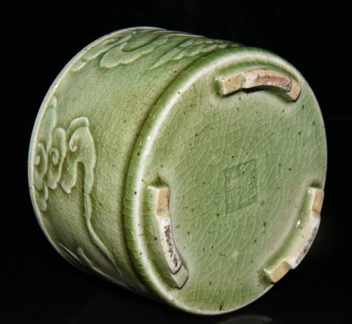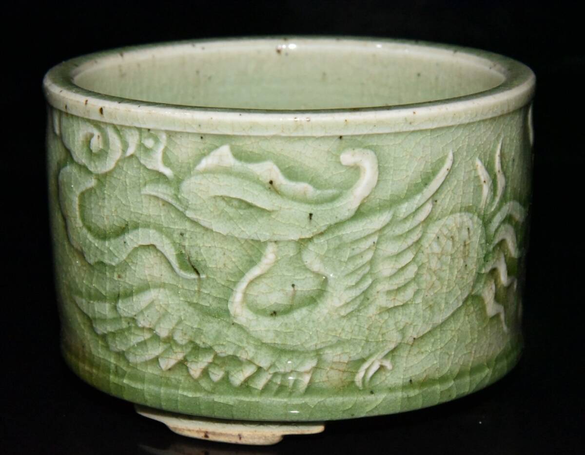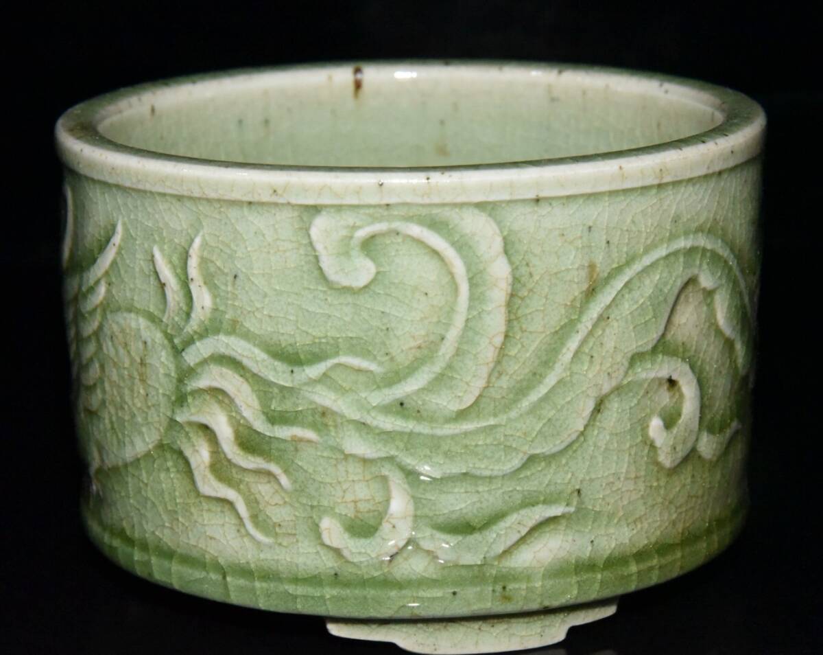 【超珍館蔵】清 乾隆年製款 古陶瓷品 豆青釉 開片 鳳紋 熏香炉 陶藝 古賞物 古董品 古美術品 時代物 旧家蔵出 稀少珍蔵品