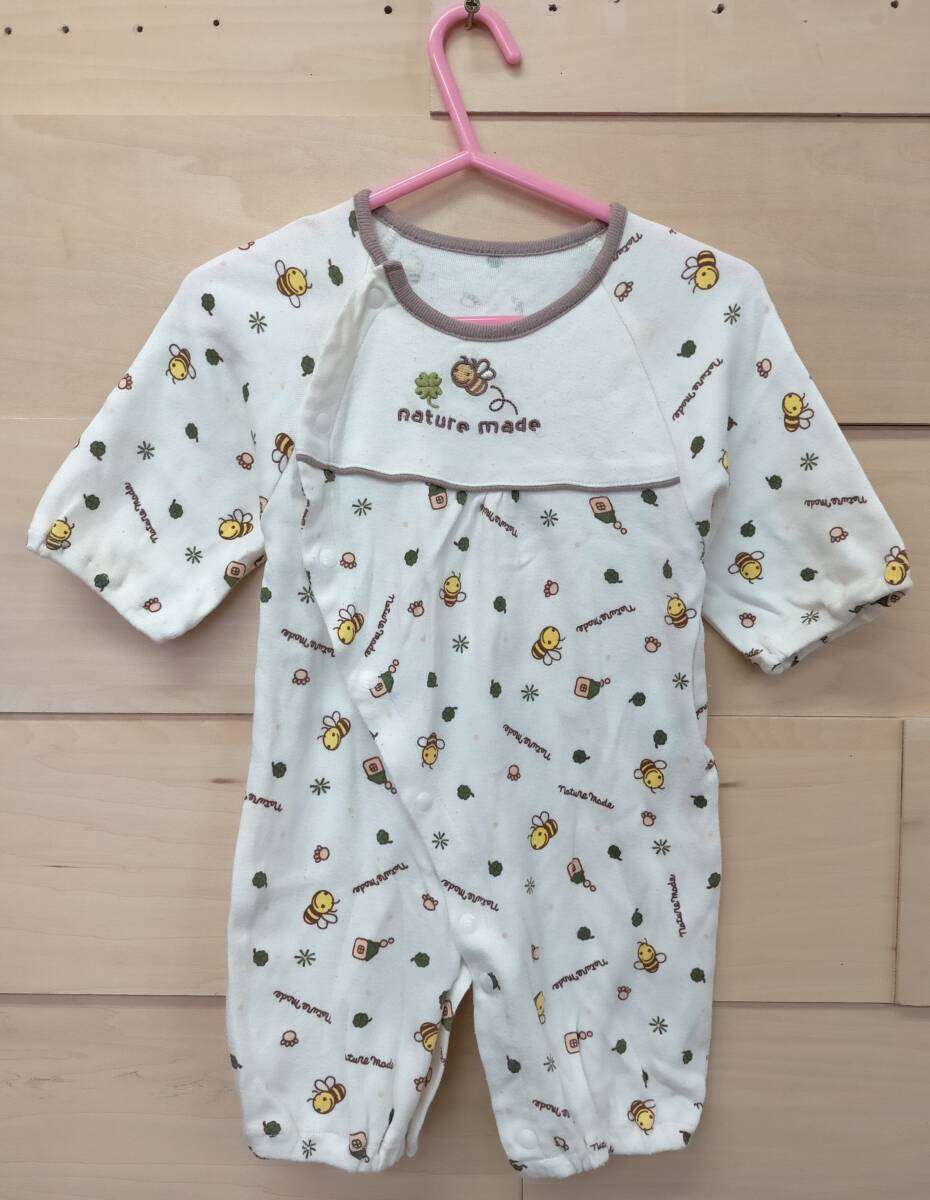 ⑦メーカー不明 ロンパース ベージュ ハチ柄 50-60サイズ