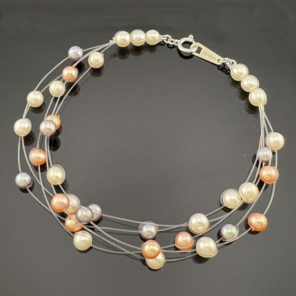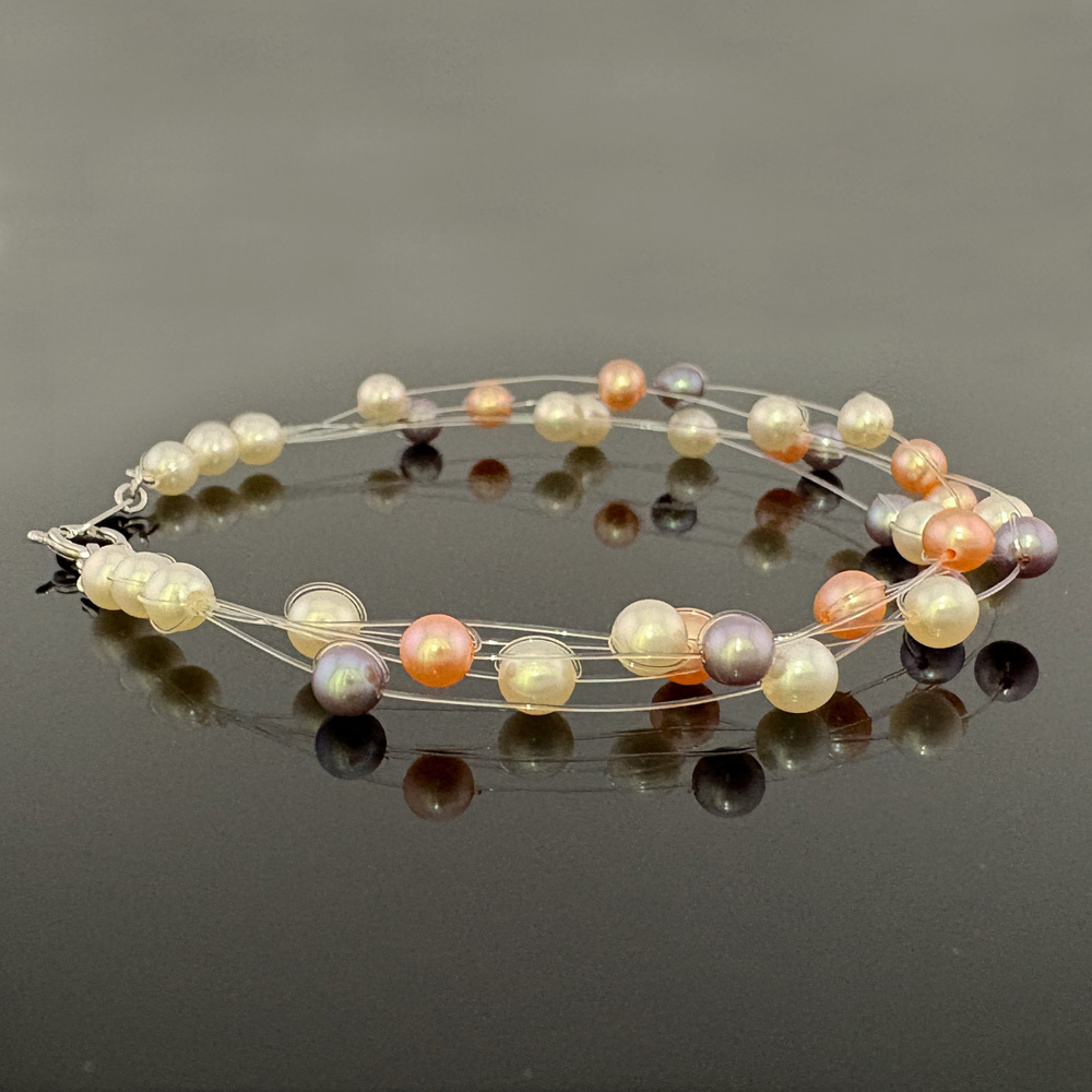 サイズ | 全長:約18.5cm パールの直径:約3.5mm~4.0mm前後 テグスワイヤー:約0.1mmが5連になっております。 |