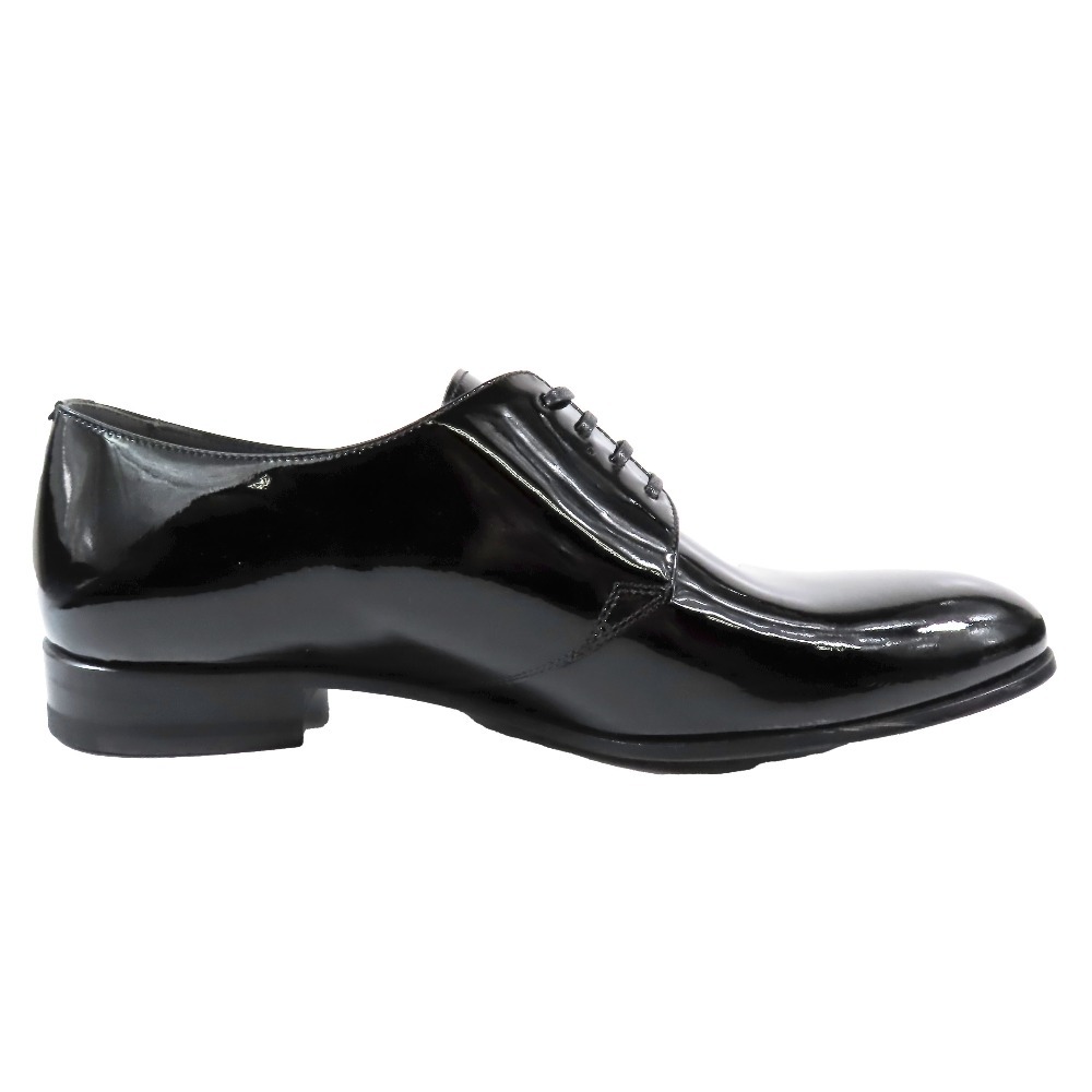 パテントレザーを使用したプレーントゥのベーシックなドレスシューズ
