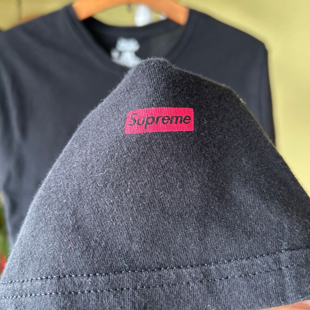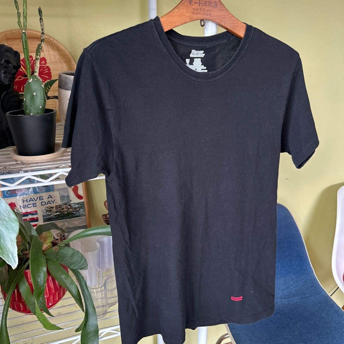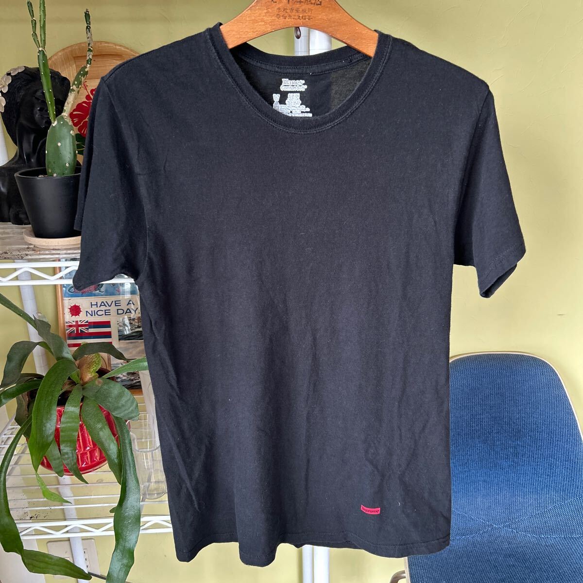 多少の誤差はお許しください。良い雰囲気です。真贋不明 綿100 なめらかな生地感にSupreme プリント できる限りダメージは説明させていただきますが、こちらが気づかない程度のわずかなしみ、よごれ、