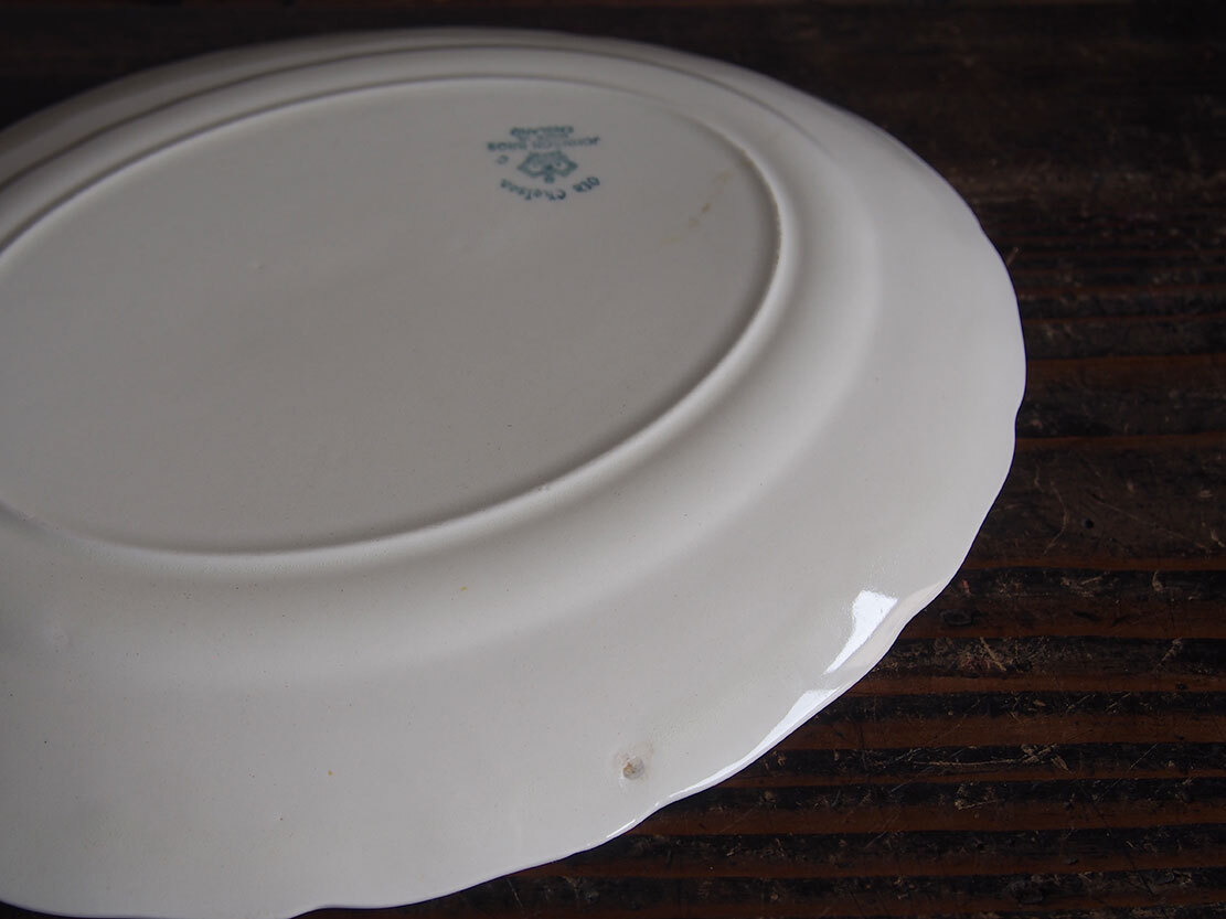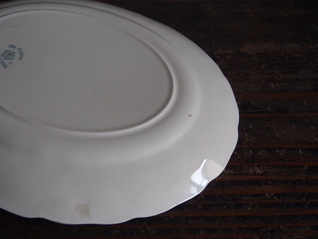 イギリス製 Johnson Brothers Pottery ジョンソン ブラザース ポッタリー オーバル皿 英国 アンティーク/K143 ●サイズ: 30cm×24.5cm×2.5cm 約576g 陶器製 イギリス製オーバルプレート、1枚。"Old Chelsea Johnson Bros MADE IN ENGLAND" のバックスタンプあり。1883年創業のJohnson Brothers Pottery/ジョンソン ブラザース ポッタリー製。バックスタンプに夜と1913年製のようです。シェルの紋様が美しいオーバル皿です。色は真白ではなく、アイボリー色。特に目立つ醜い傷などはありません。裏に製造過程でできる目跡と、釉薬のよれスレ?のようなものがあります。コレクション、実用にもいかがでしょう。 詳細は写真でご確認いただけます。古い物だと言う事をご理解の上のご入札をお願い致します。材質及び年代の判定は困難な場合があります、差異についてはあらかじめご了承下さい。 ー ー ー ー ー ー ー ー ー 記載にない方法での発送はいたしません。 発送をお急ぎのお客様にはご希望に添えない場合があります。 ー ー ー ー ー ー ー ー ー ●その他 ヤフオクの小さな写真では商品を詳細にご覧頂く事ができません。リンク写真で質感ダメージ等の写真を数多くアップしています。必ず全部の写真がよく見える環境でご覧下さい。本商品は時代を経た古い物です。写真や説明で記載できないようなキズやシミ、古い物特有の臭いのある物もあります。できる限り詳細に説明するよう努力しておりますが、ご理解頂ける方、神経質で無い方、埃によるアレルギー等の無い方のご入札をお願いします。 必ず当店の自己紹介欄と落札後の落札通知をご覧下さい。 土曜日曜日は基本的には定休日です。メール、質問への回答は月曜日にいたします。 ご連絡は落札後48時間以内にお願いします。ご連絡が無い場合はお客様都合によるキャンセルとさせて頂きます。落札から1週間(土日祝日含む)経過してもご入金が無い場合も同様といたします。ご注意下さい。 特に評価「0」の新規のお客様、および 私とのお取り引きが初めてのお客様は遅れる事の無い様にお願い申し上げます。 評価の悪いお客様のご入札は取り消す場合があります。 入札の取り消しおよびキャンセルは固くお断りいたします。 自己紹介欄には急な連絡事項等も記載してあります、ご入札前に必ずご覧下さい。落札後には『落札通知』の内容も必ずご確認ください。 当オークションをご覧下さりありがとうございました。 Accept Paypal payment |