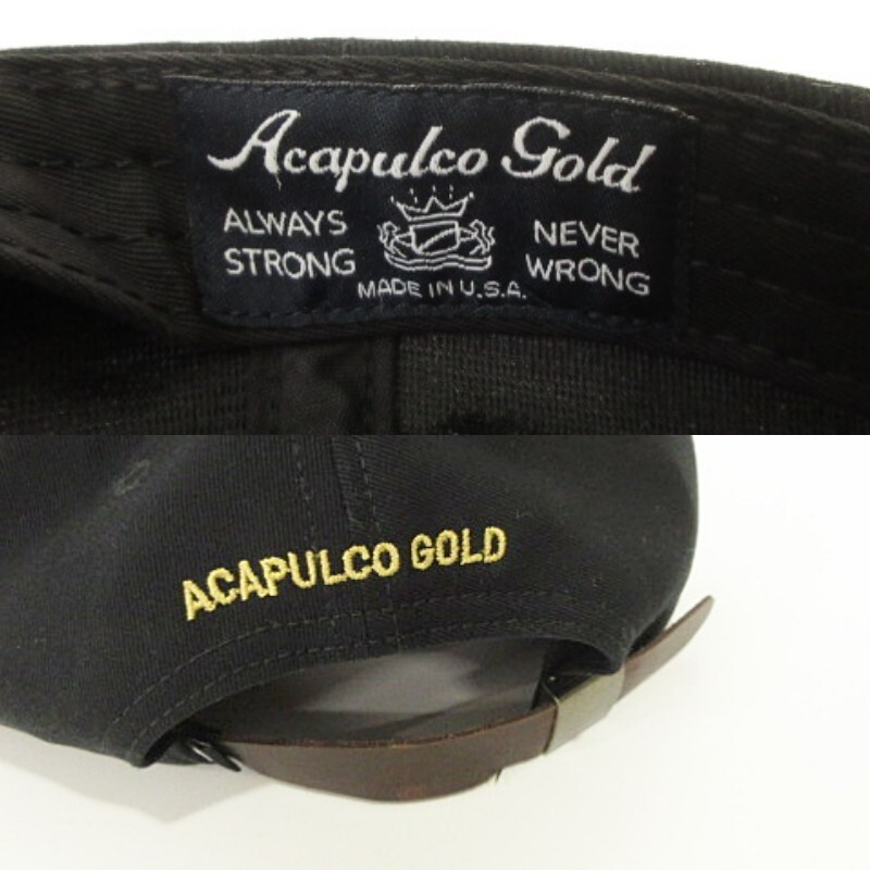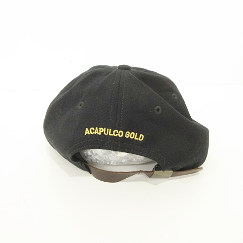 アカプルコゴールド Acapluco Gold 美品 キャップ 帽子 USA製 ブルドッグ ワンポイント レザーアジャスター 黒 ブラック メンズ