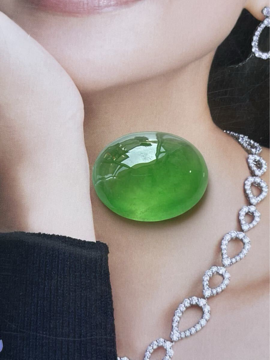 海麗 天然翡翠裸石 大粒 カボションルース 高級jewelryジュエリーオーダーメイド用 濃いグリーン色 重さ36.5ct MIRE1064