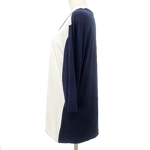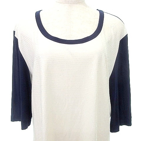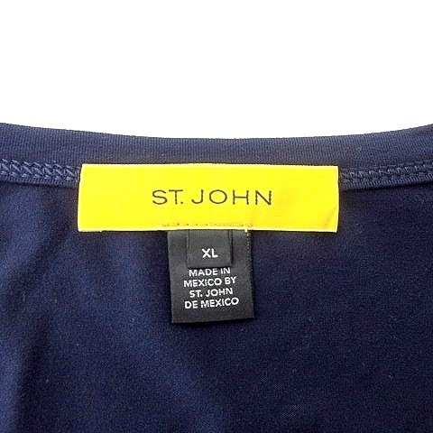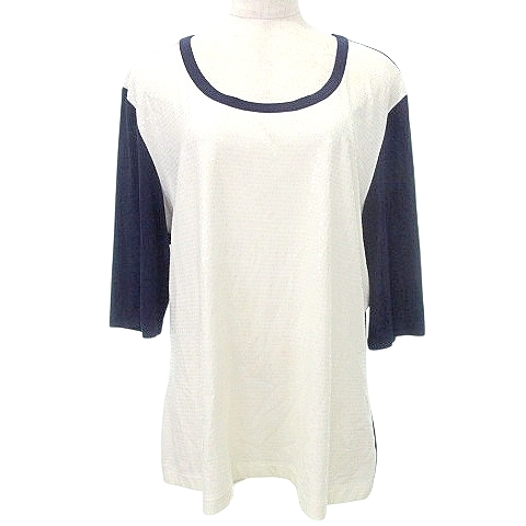 セントジョン ST.JOHN ☆AA★ カットソー 七分袖 レーヨン ストレッチ XL 白 ホワイト 紺 ネイビー A0522 レディース