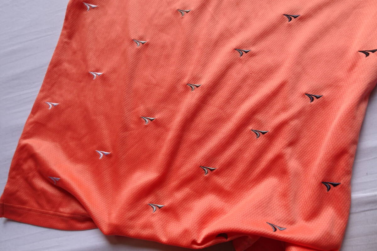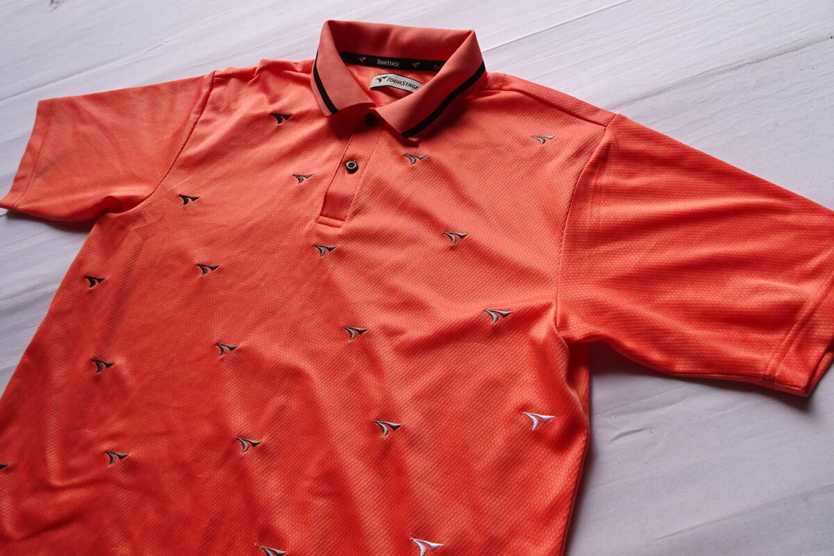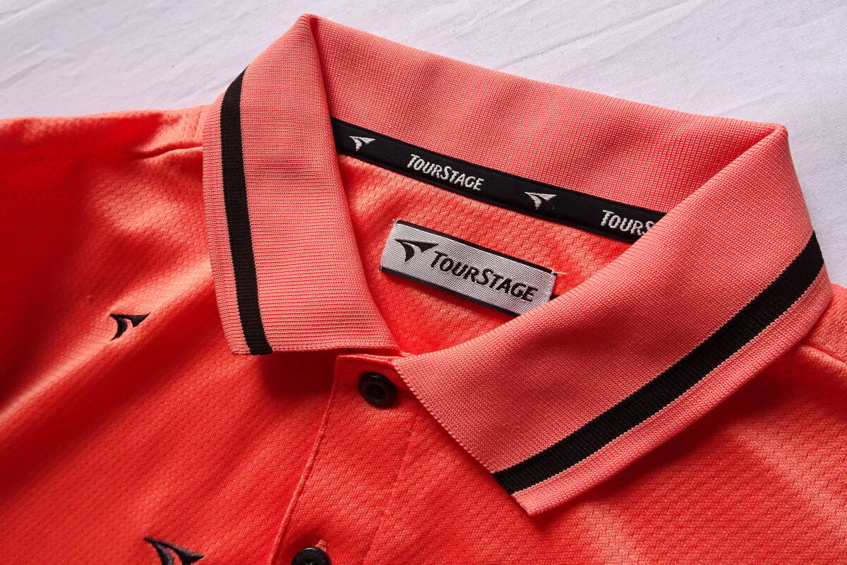 TOUR STAGE/ツアーステージ/半袖ポロシャツ/ゴルフウェア/速乾性/ロゴししゅう/裾サイドスリット/オレンジ/Lサイズ(5/27R7)