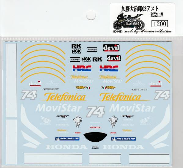タミヤ対応1/12ホンダRC211V'03テスト加藤大治郎デカールです。デカールのみです。