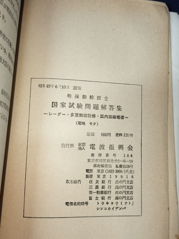 ■特殊無線技士 国家試験問題解答集■レーダー・多重無線設備 国内無線電信■ (昭和39年9月-48年11月施行)昭和49年22版 電気通信振興会発行 |