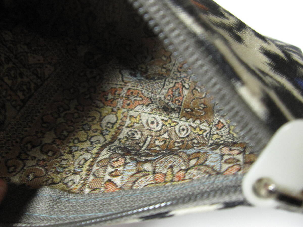 内側は、古布 (幾何学模様)  ◎ファスナーは、グレー系 (つまみ付き)